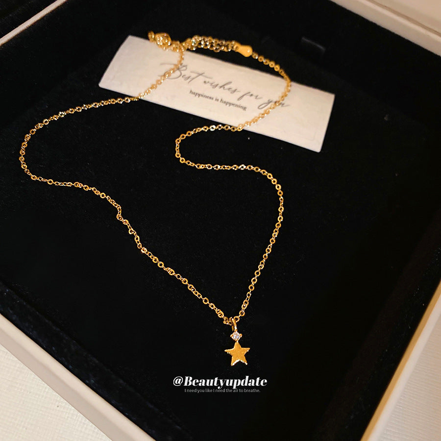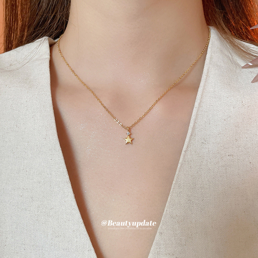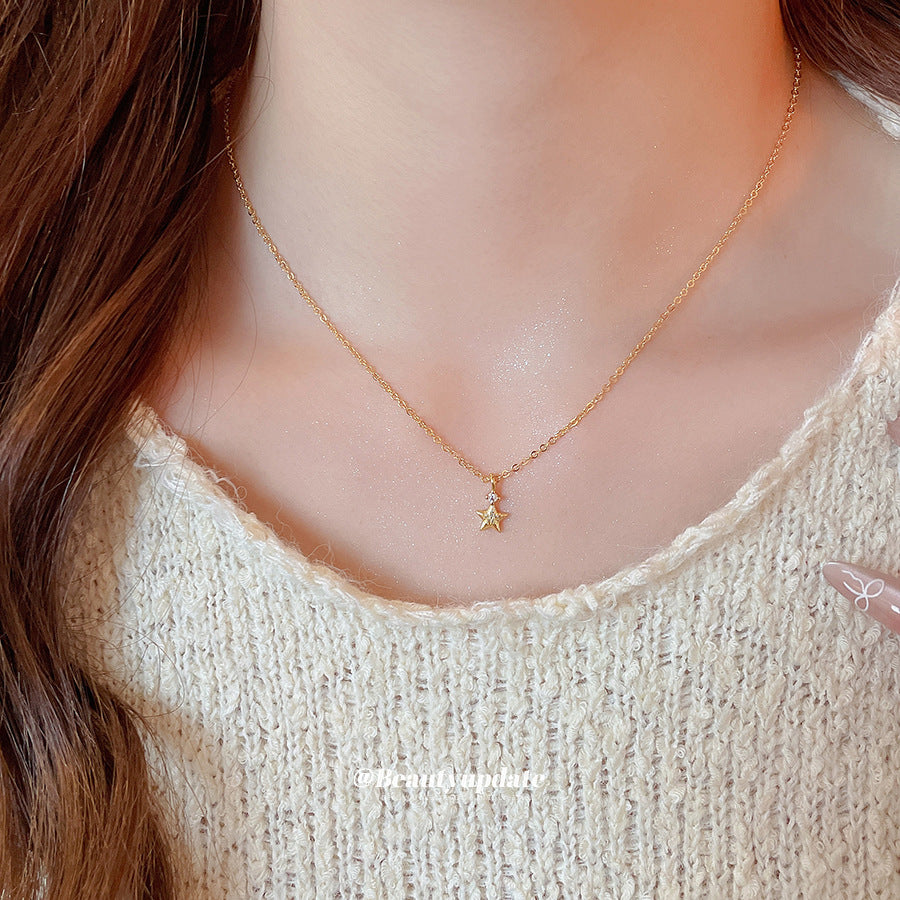 A廠【HN10057】歐美跨境鋯石星星吊墜項鍊時尚簡約百搭氣質鎖骨鏈輕奢高級感項鍊 25.09-4