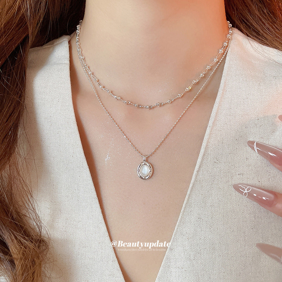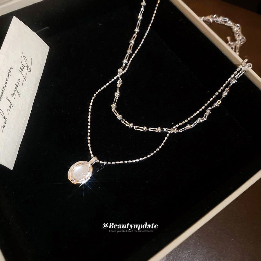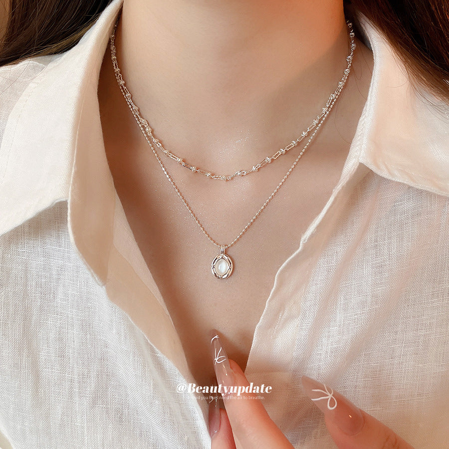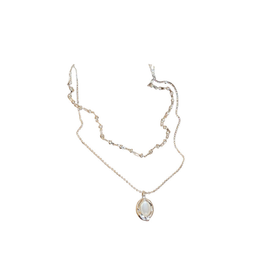 A廠【HN10069】樹脂幾何橢圓形吊墜雙層時尚項鍊法式宮廷風鎖骨鏈輕奢高級感項鍊飾 25.09-4