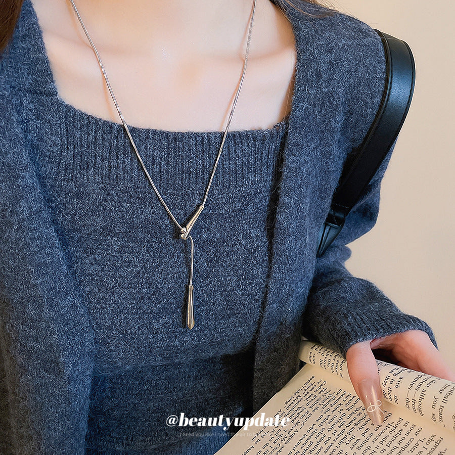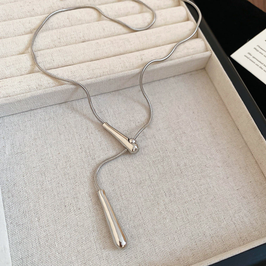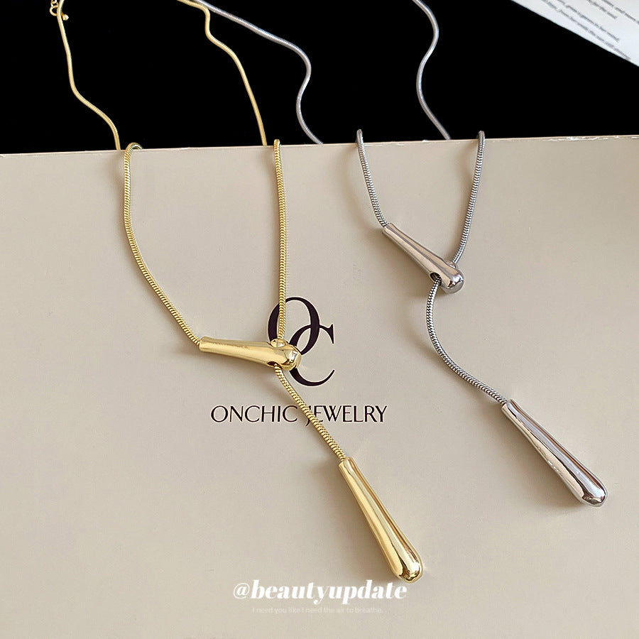 A廠【HN10144】歐美金屬感水滴吊墜項鍊時尚簡約百搭氣質頸鍊小眾設計感毛衣鍊女 25.10-1