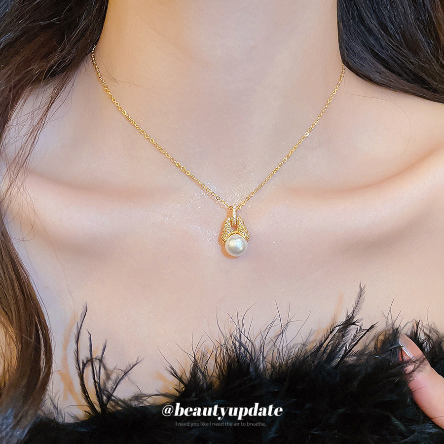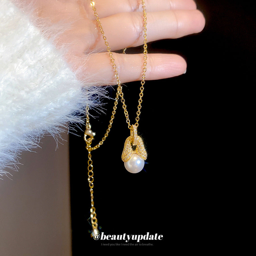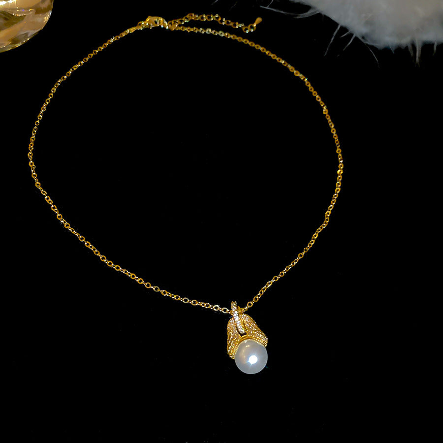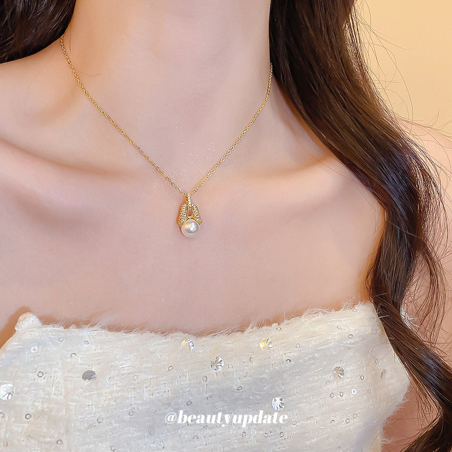 A廠【HN10520】18k真金電鍍鋯石珍珠吊墜項鍊精緻優雅氣質鎖骨鏈輕奢高級感頸鍊 25.11-1