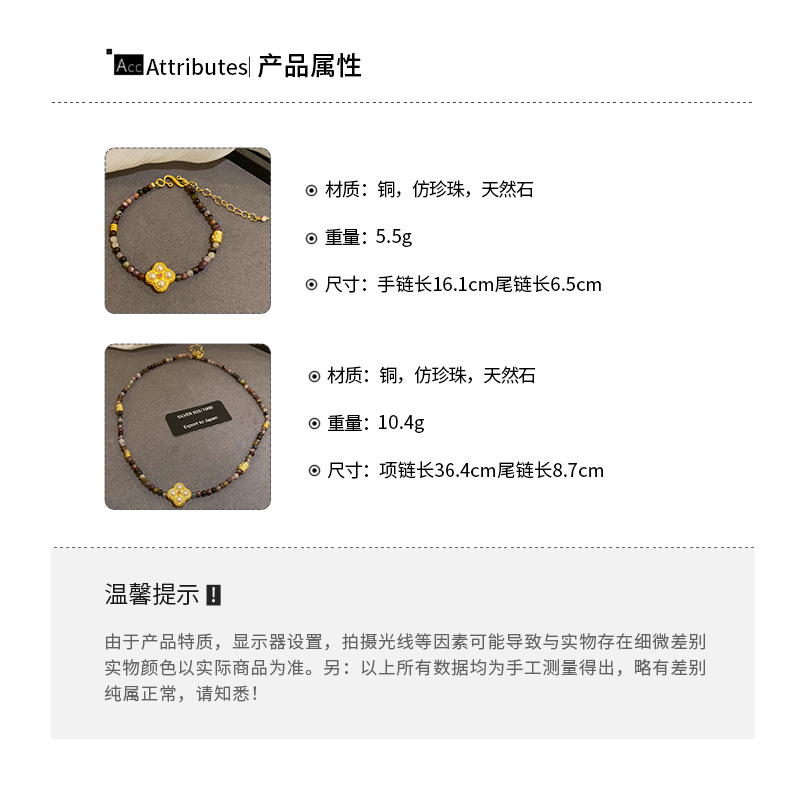 天然石,水晶,淡水珍珠等天然材質會有正常的微瑕疵及色差產生,若可認同再作採購。飾品所使用的合金是會氧化變色的,無法避免的,請注意存放和保養!
