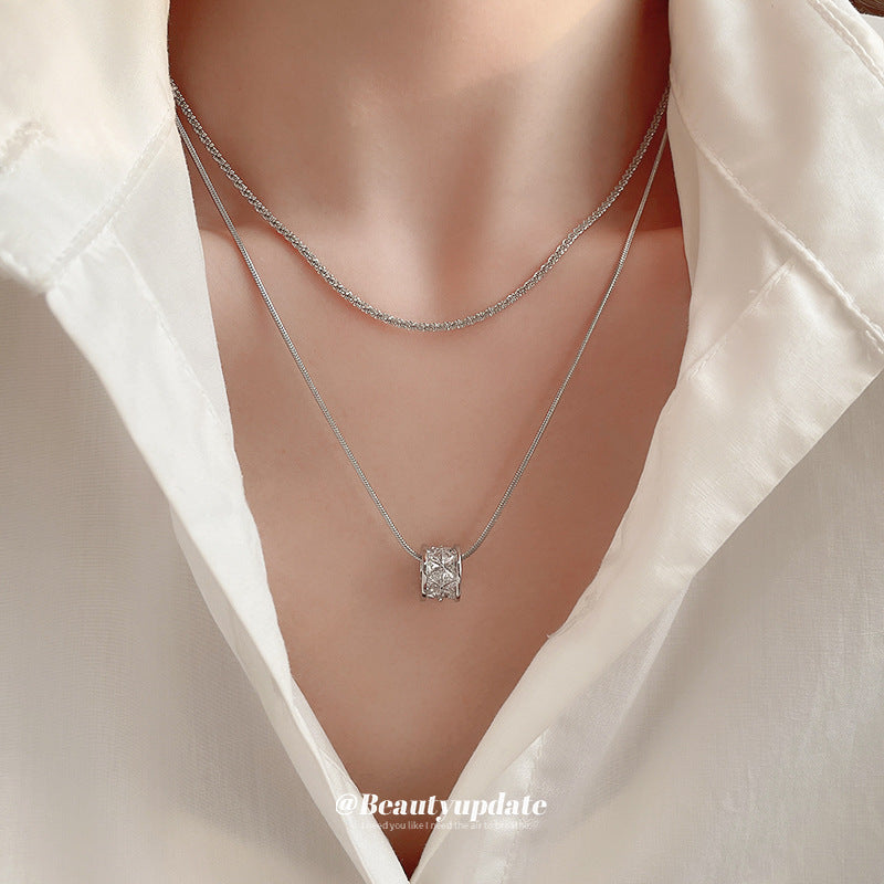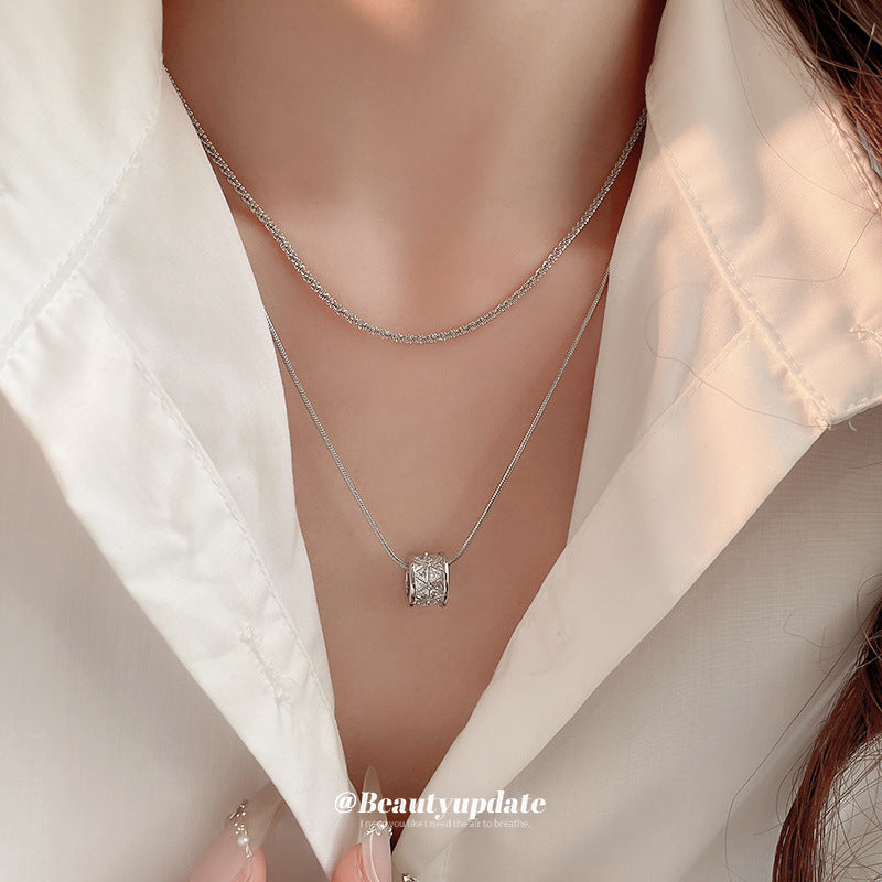 A廠【HN7582】鋯石小蠻腰字母圓柱雙層項鍊新款氣質鎖骨鏈高級感時尚項鍊配件飾女 24.10-4
