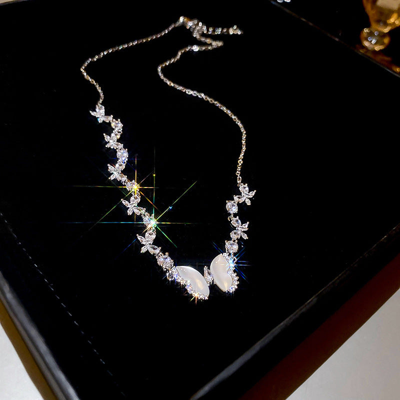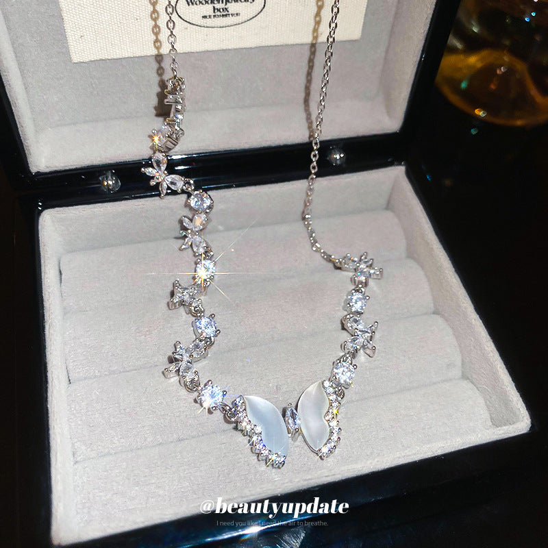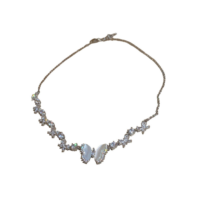 A廠【HN7625】鑲鋯石蝴蝶貝母項鍊女歐美精緻簡約鎖骨鏈時尚氣質項鍊輕奢高級感 24.10-4