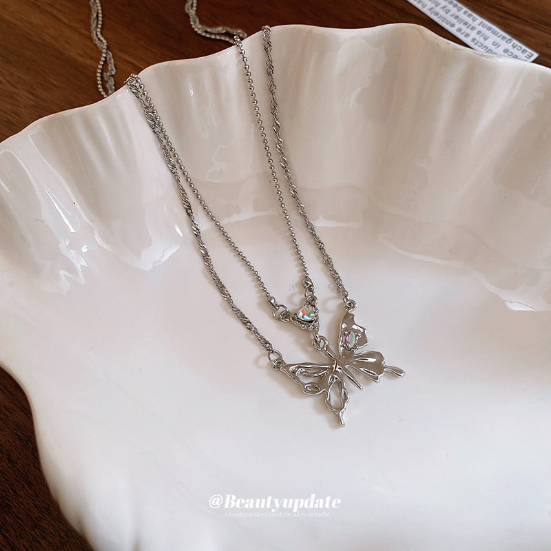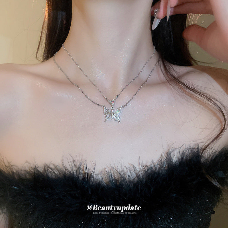 A廠【HN7626】雙層鑲鑽蝴蝶項鍊女百搭時尚簡約小眾鎖骨鏈輕奢風氣質高級感項鍊 24.11-2