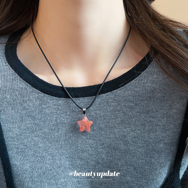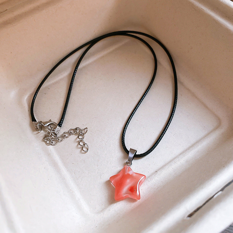 A廠【HN7648】跨境皮繩草莓晶星星吊墜項鍊女百搭小眾個性鎖骨鏈高級感時尚飾品 24.11-1