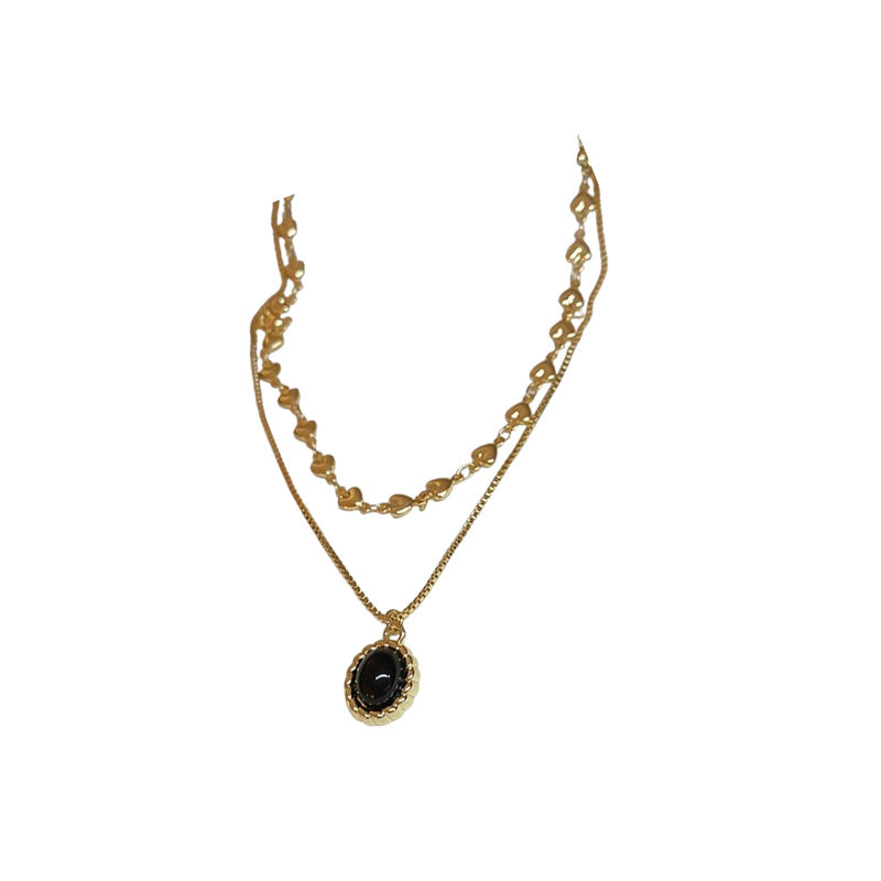 A廠【HN7656】雙層愛心黑色吊墜項鍊女生摩登氣質疊戴毛衣鏈復古鎖骨鏈時尚頸鍊 24.11-1