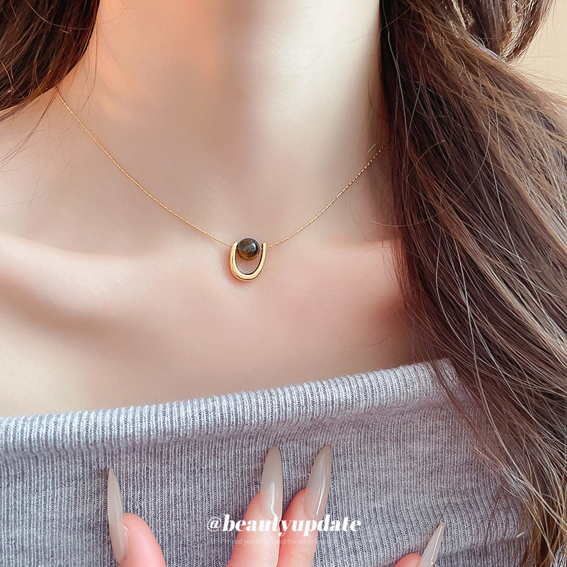 A廠【HN7739】跨境人造虎眼石鈦鋼項鍊女百搭小眾簡約鎖骨鏈高級感輕奢飾品配件 24.11-1