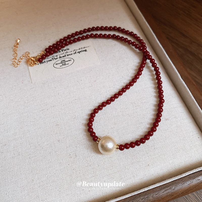 A廠【HN7756】真金電鍍安可拉紅玻璃珠串珠項鍊高級感秋冬鎖骨鍊女時尚輕奢飾品 24.11-2