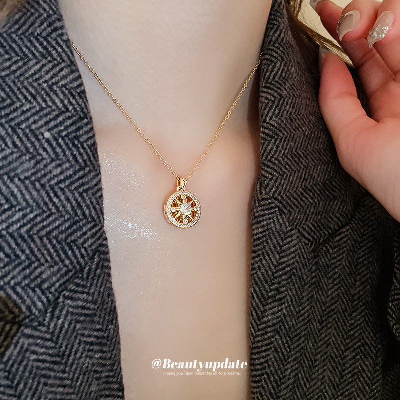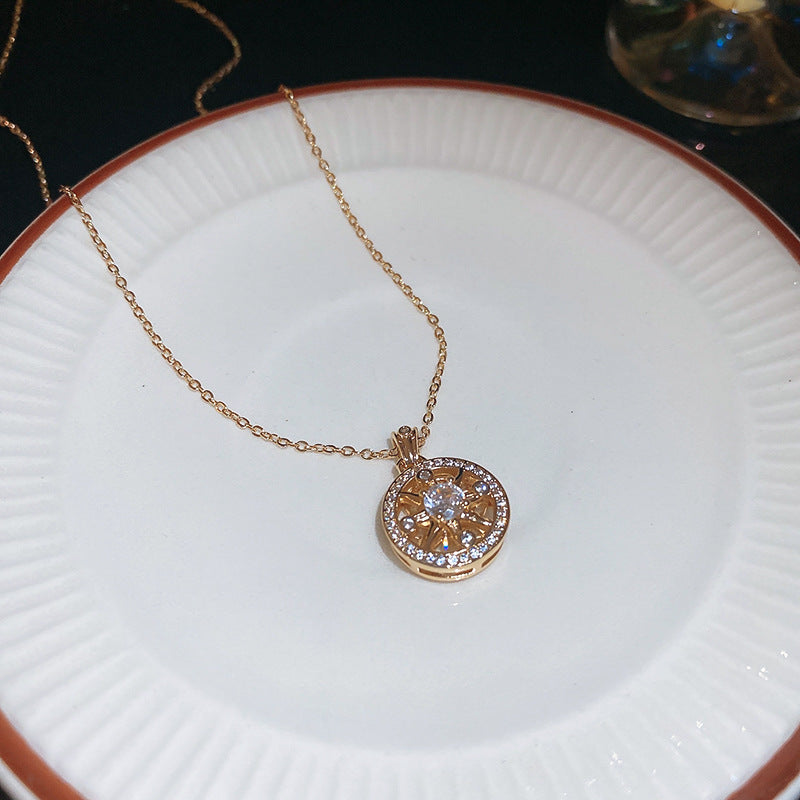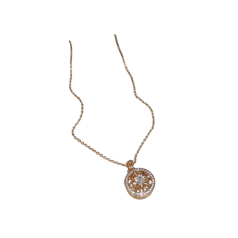 A廠【HN7903】真金電鍍鋯石圓形吊墜項鍊輕奢小眾百搭鎖骨鏈時尚氣質高級感飾品 24.12-1