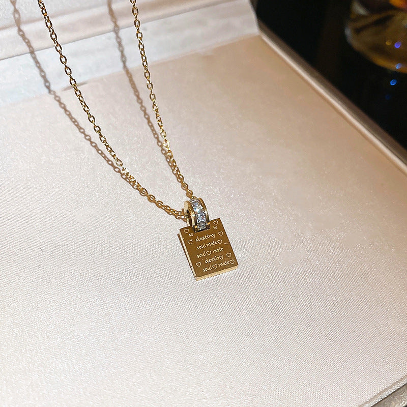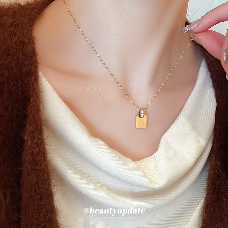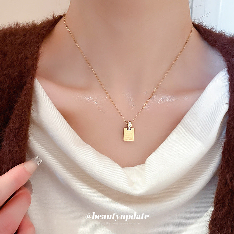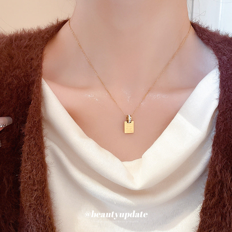A廠【HN7922】鈦鋼不銹鋼方形鋯石字母項鍊女小眾百搭鎖骨鏈時尚輕奢高級感飾品 24.11-5