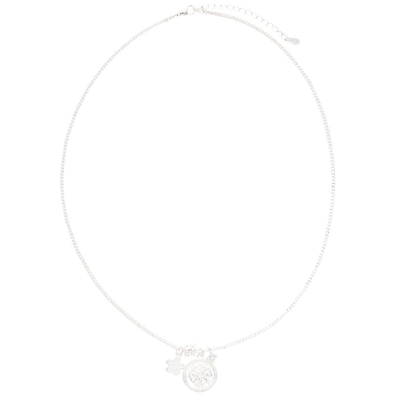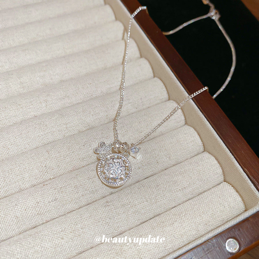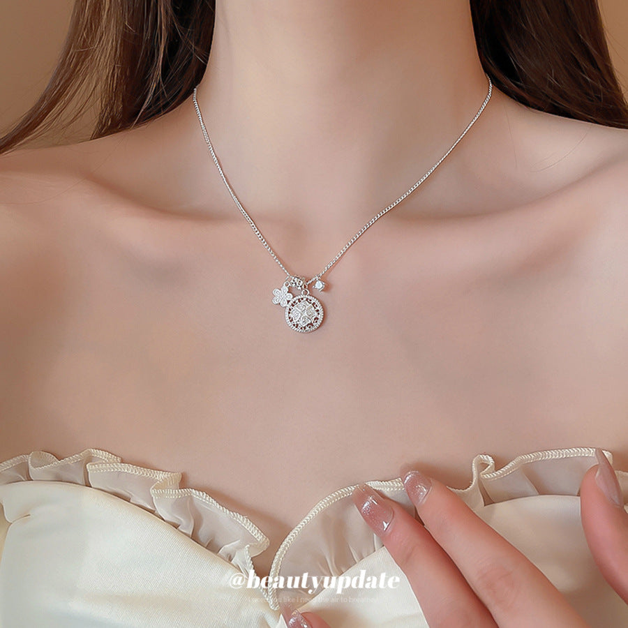 A廠【HN8365】素銀鋯石花朵圓形吊墜項鍊小眾設計鎖骨鏈簡約精緻高級感百搭項鍊 25.04-1