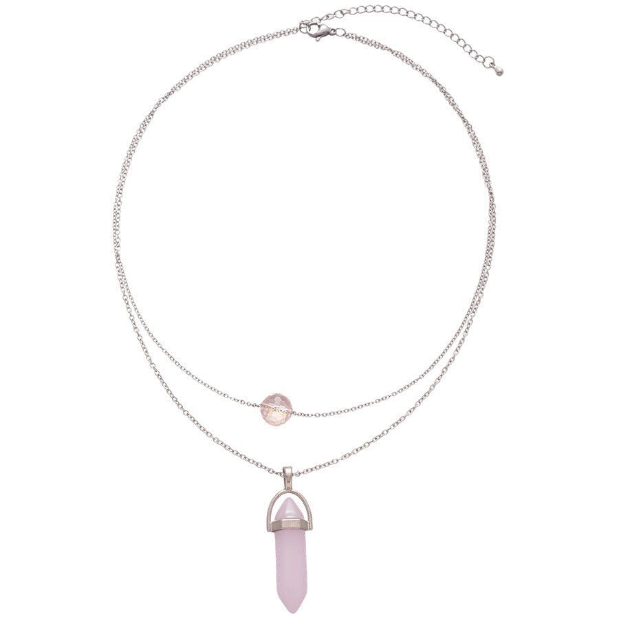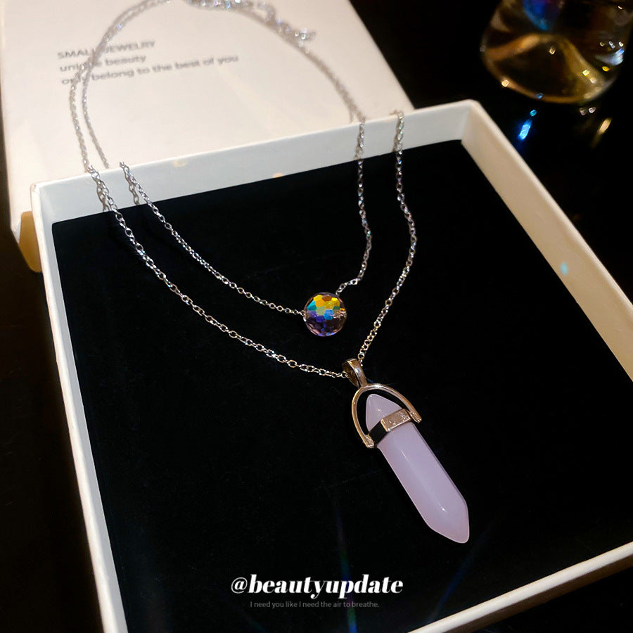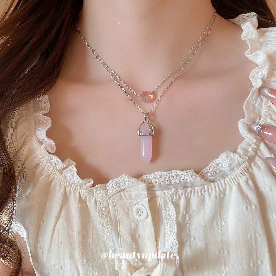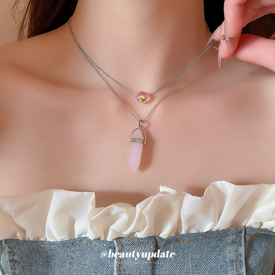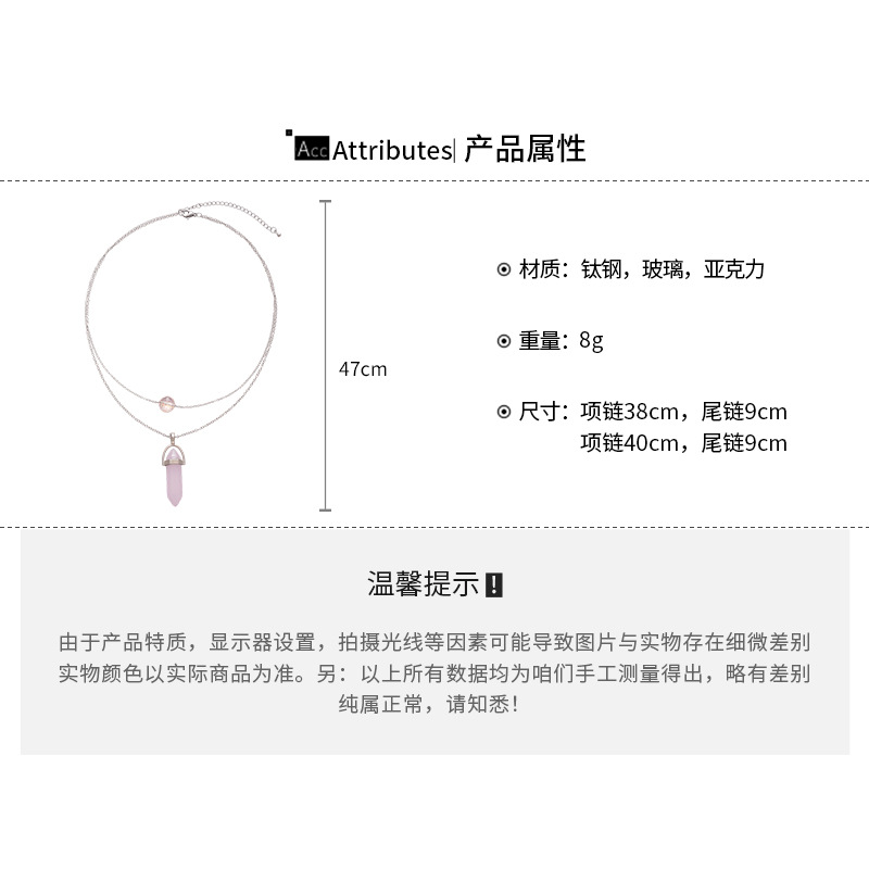 A廠【HN8367】鈦鋼粉晶雙層吊墜項鍊輕奢小眾設計鎖骨鏈時尚個性簡約頸鍊項鍊飾女 25.04-3