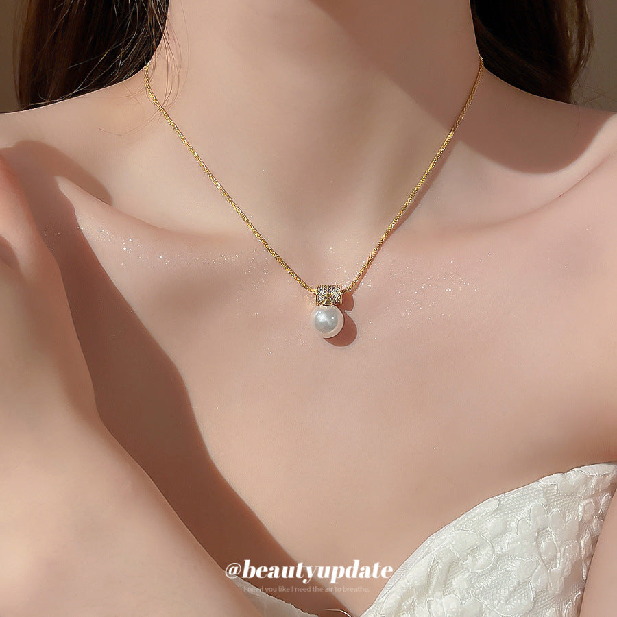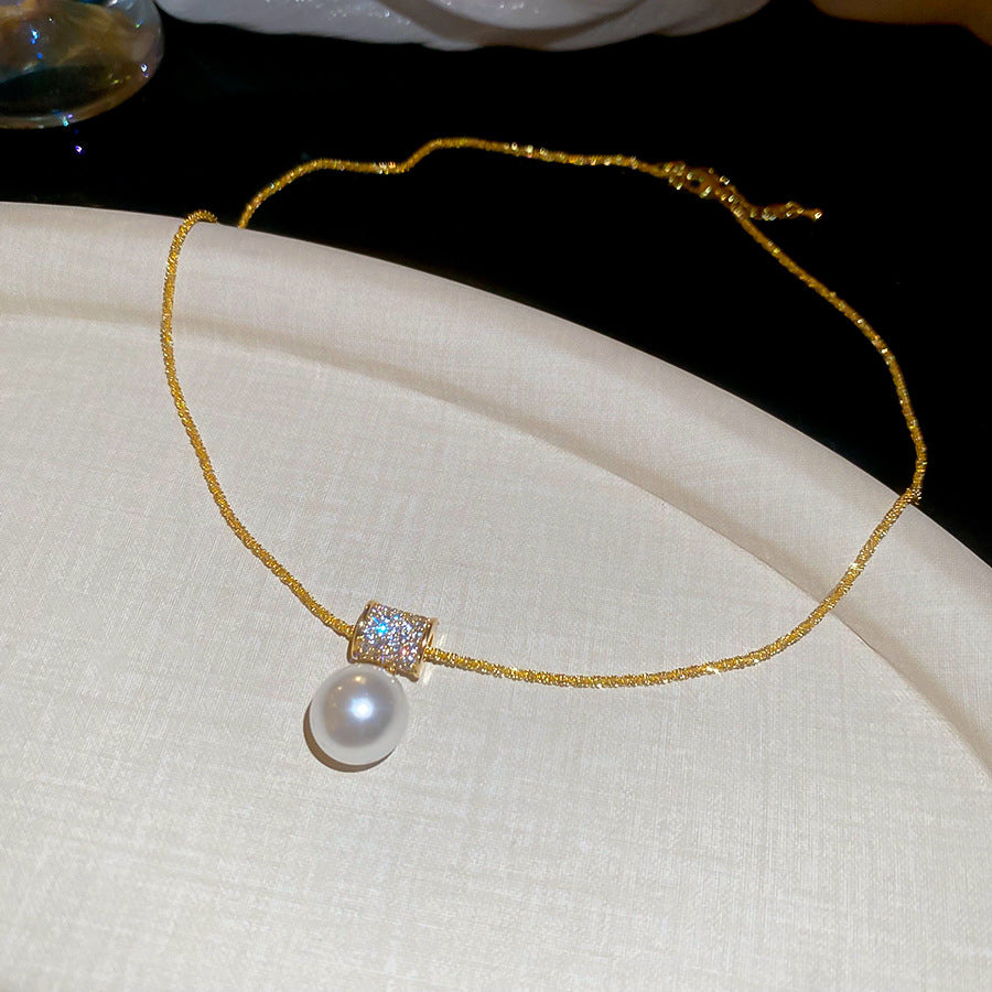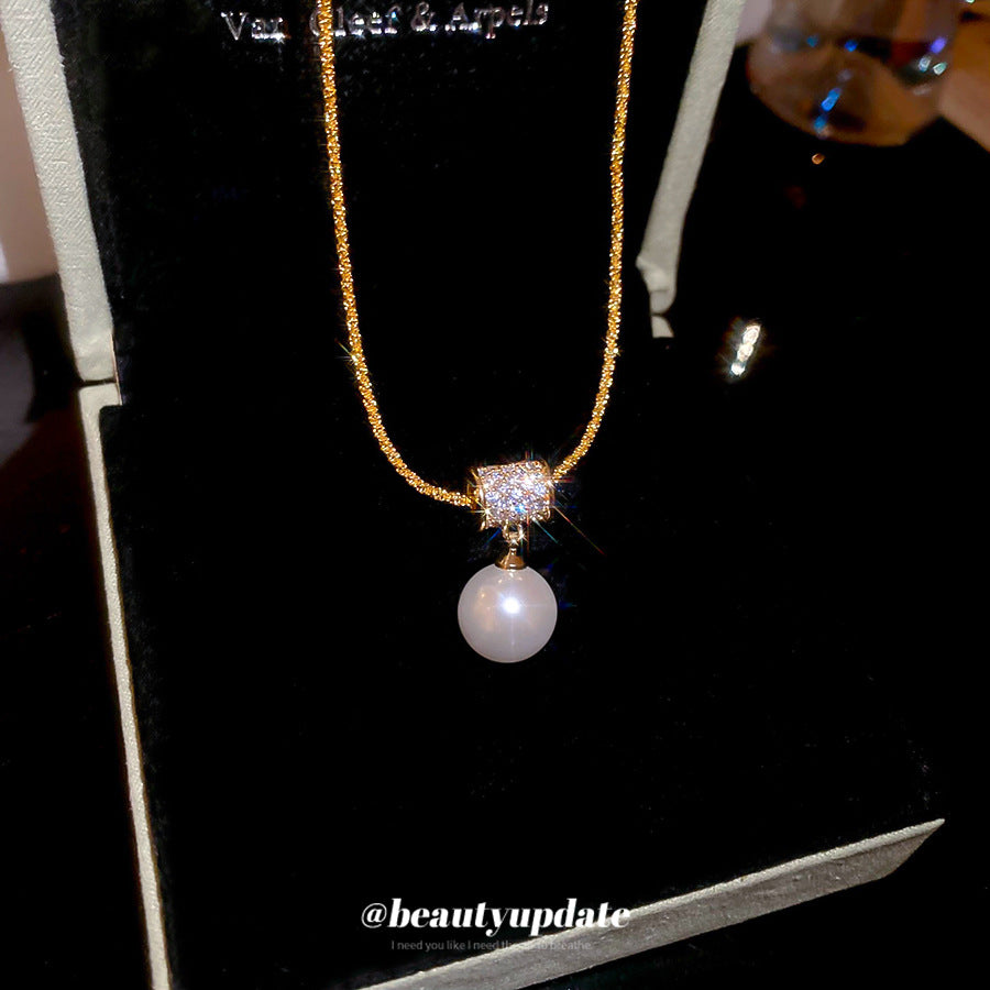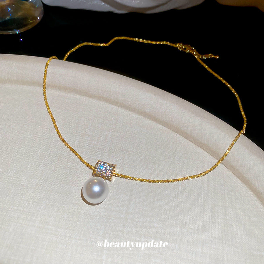 A廠【HN8419】18K真金電鍍鋯石珍珠吊墜項鍊輕奢高級感時尚鎖骨鏈法式百搭頸鍊 25.04-3