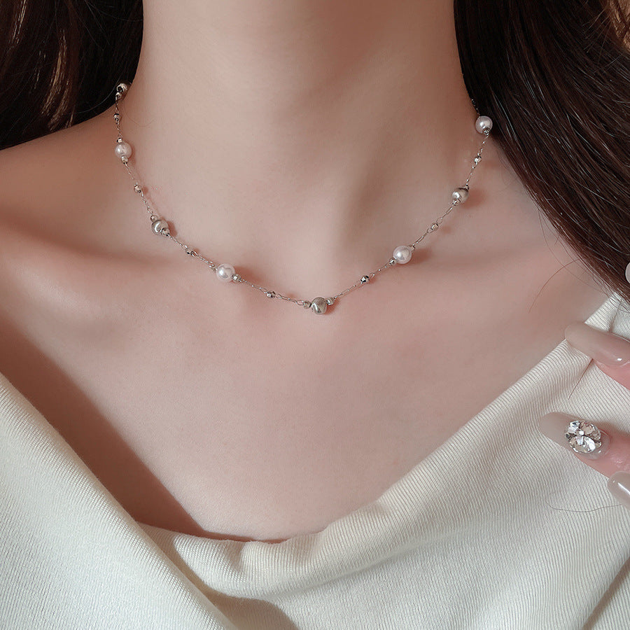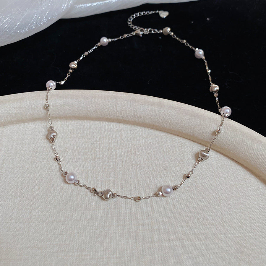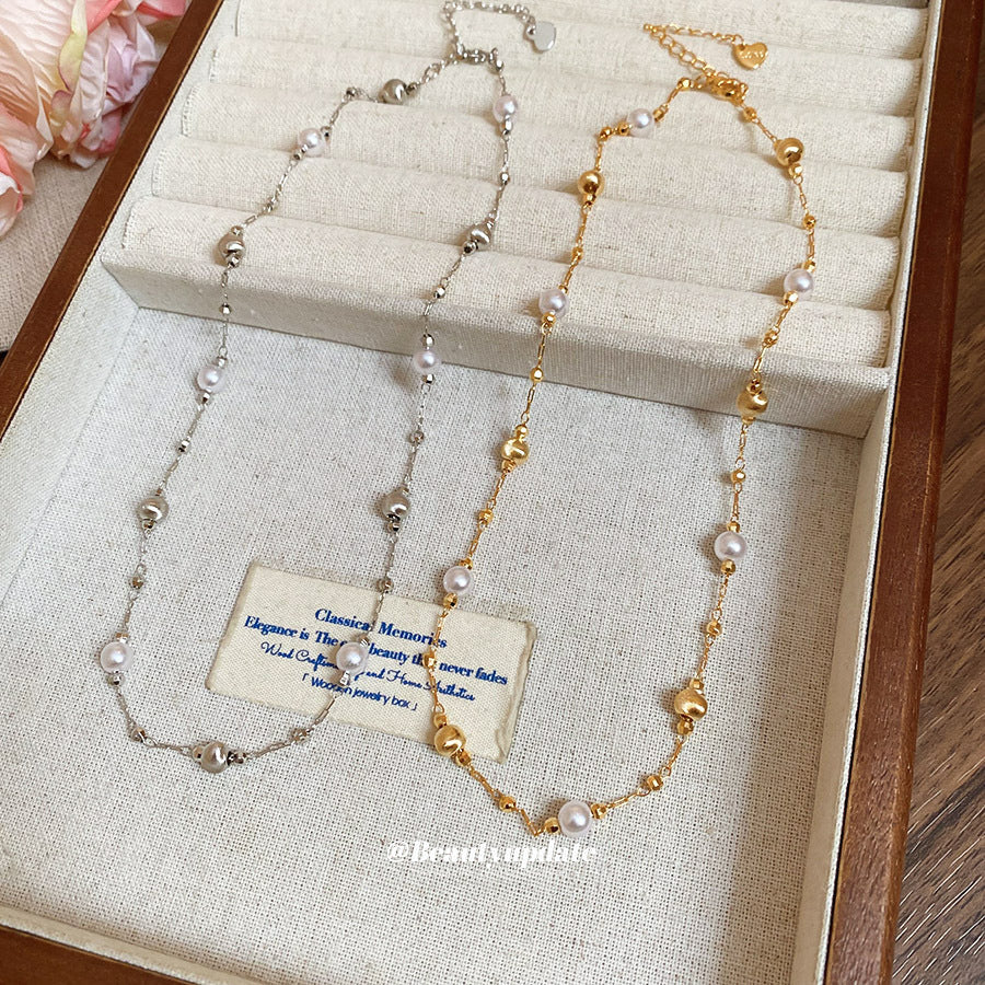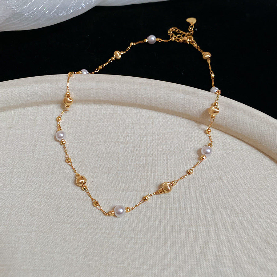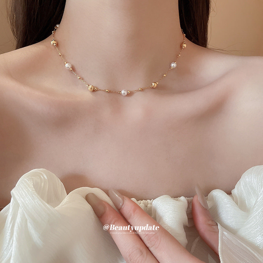 A廠【HN8428】真金電鍍不規則圓形珍珠串珠項鍊法式時尚輕奢鎖骨鍊高級感飾品女 25.04-3