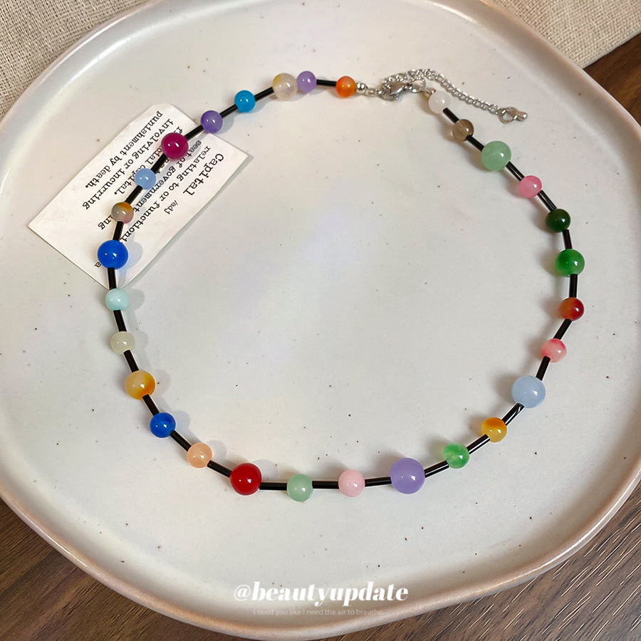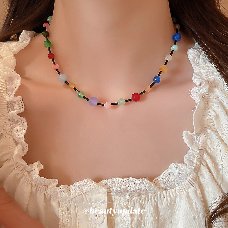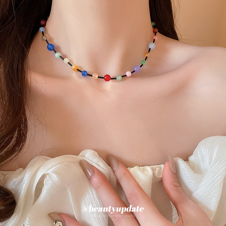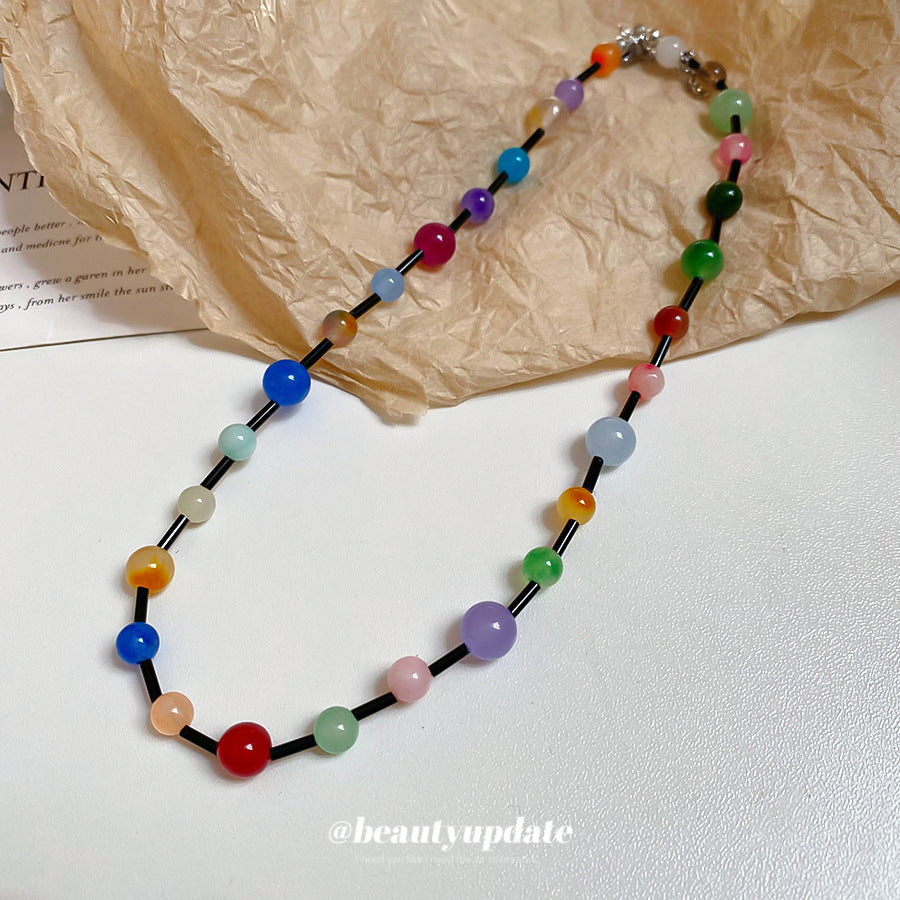 A廠【HN8451】鈦鋼彩色石頭串珠項鍊簡約高級感時尚精緻鎖骨鍊個性氣質頸鍊項鍊飾 25.04-3