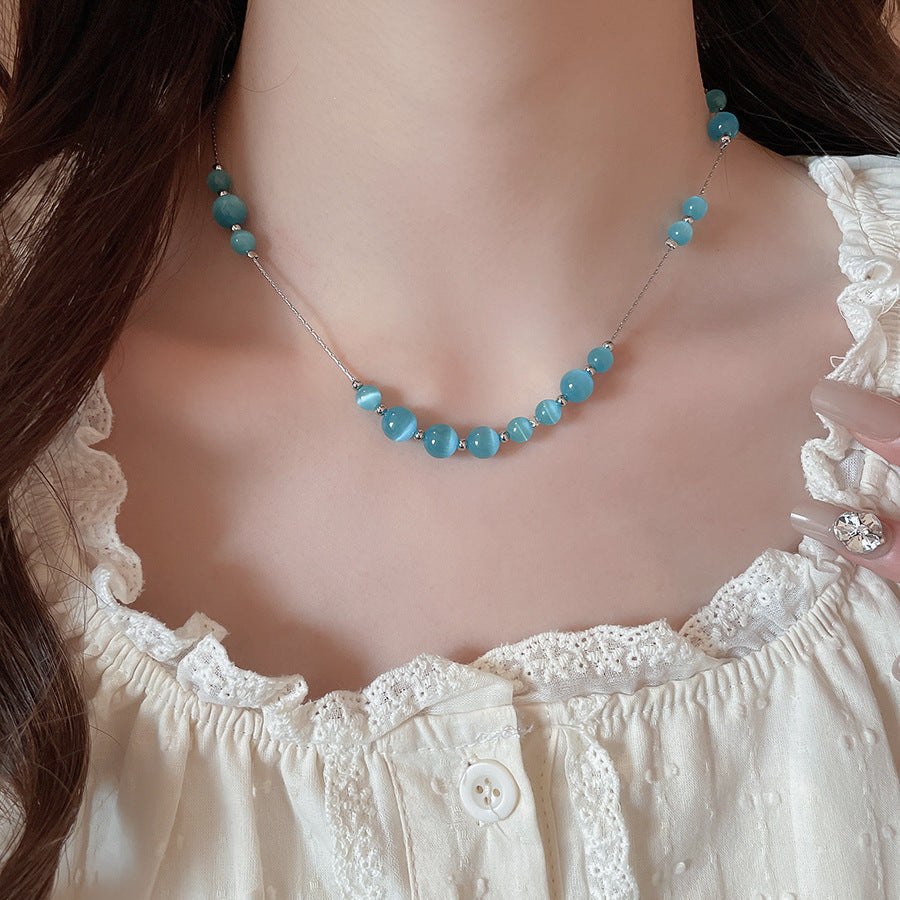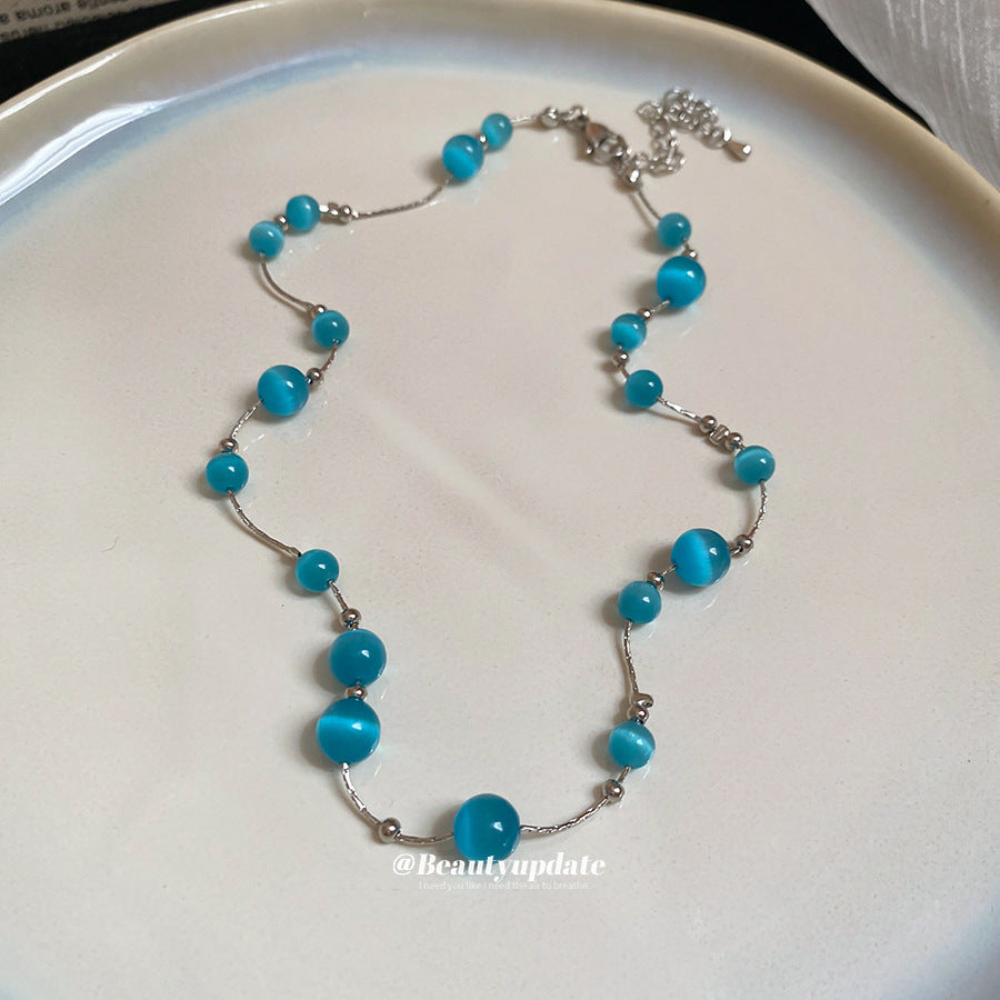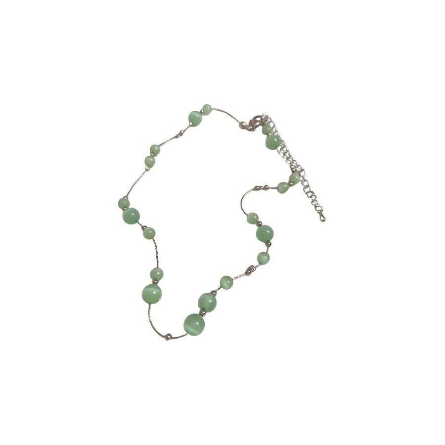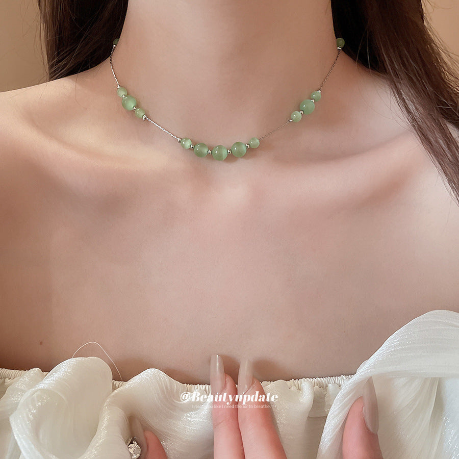 A廠【HN8469】鈦鋼簡約不規則貓眼石串珠項鍊女時尚精緻設計鎖骨鏈個性氣質頸鍊 25.04-3