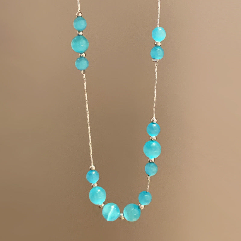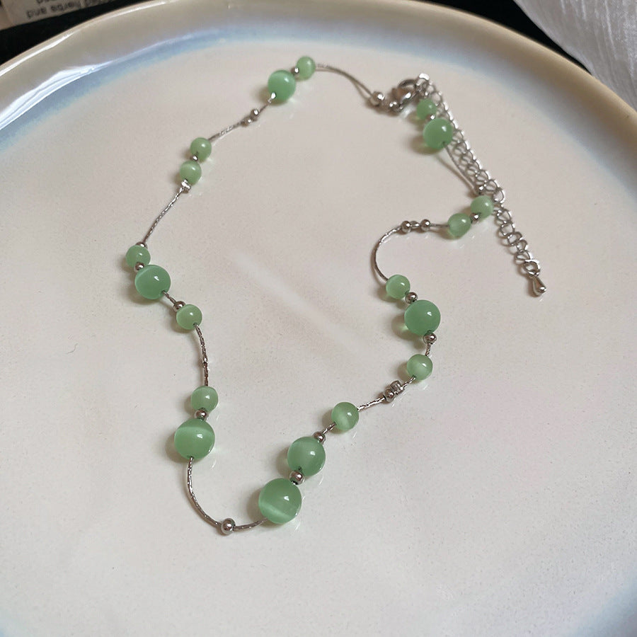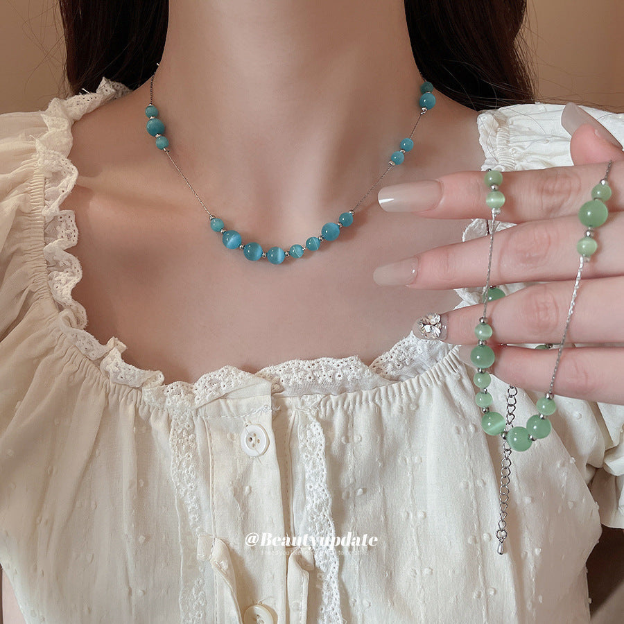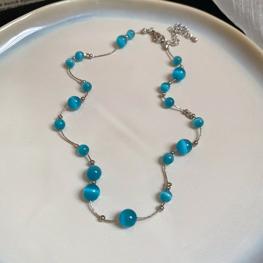 A廠【HN8469】鈦鋼簡約不規則貓眼石串珠項鍊女時尚精緻設計鎖骨鏈個性氣質頸鍊 25.04-3