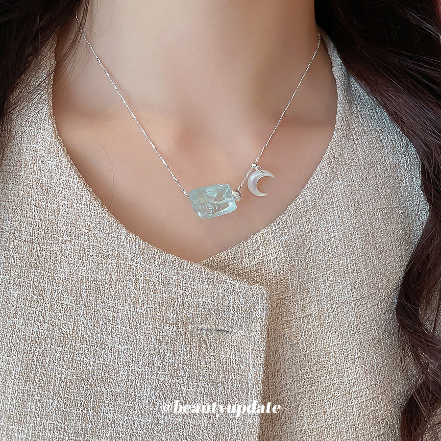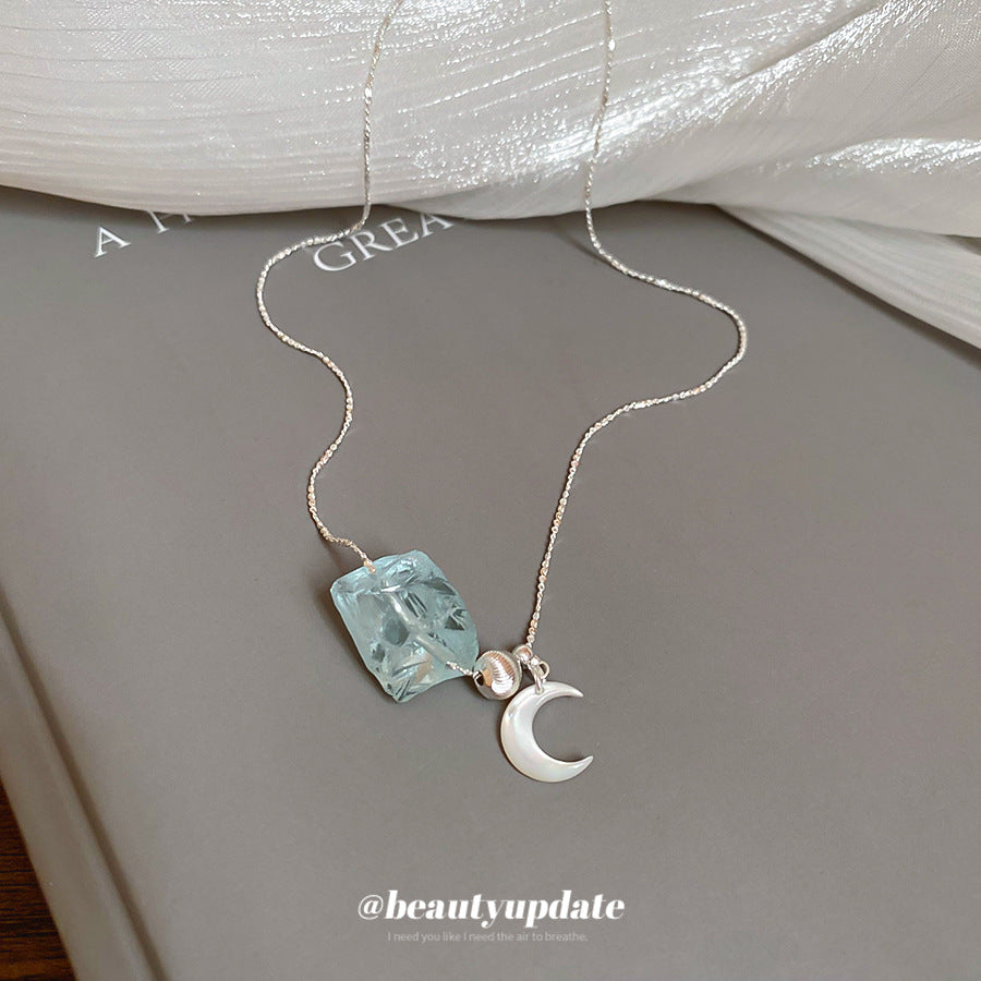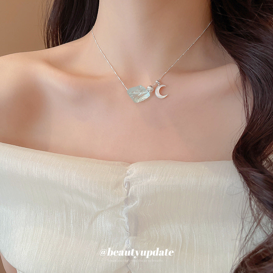 A廠【HN8706】不規則水晶樹脂月亮吊墜項鍊個性簡約小清新鎖骨鏈小眾高級感項鍊飾 25.05-3