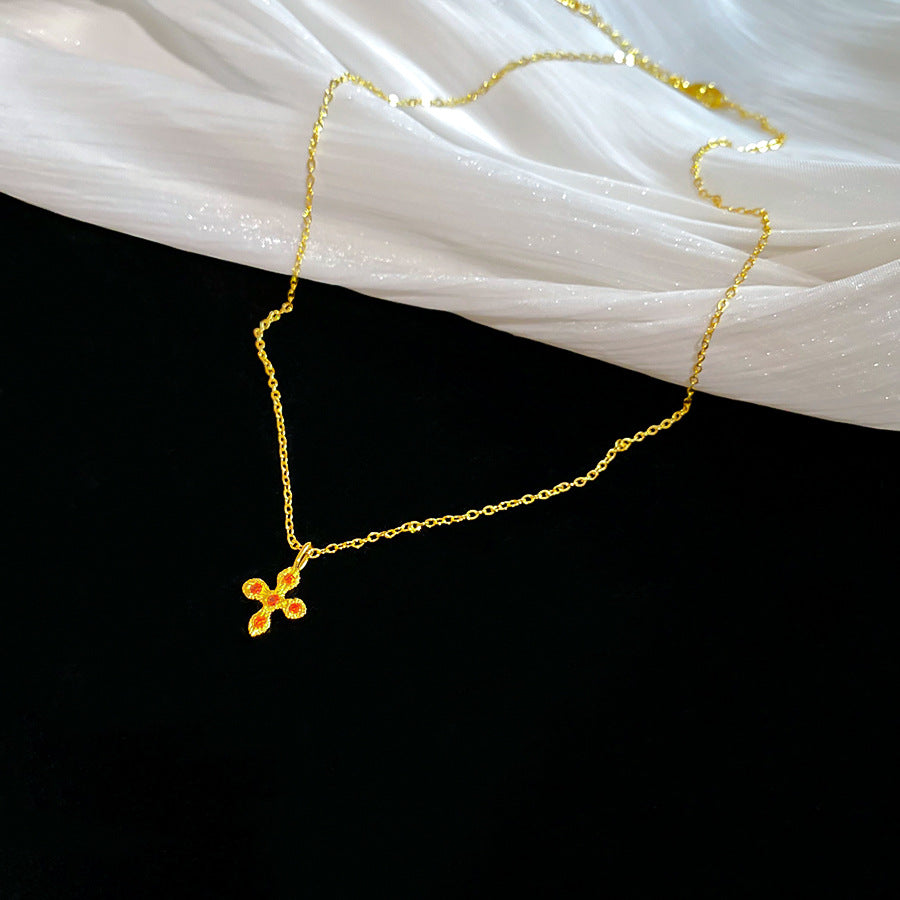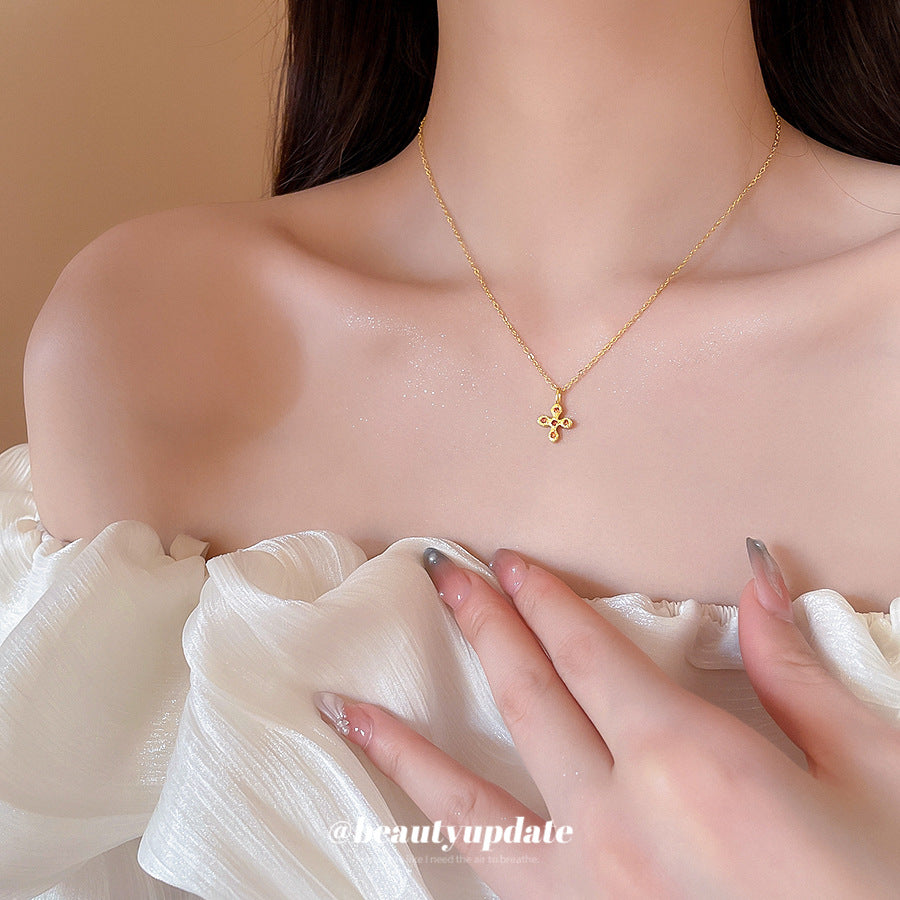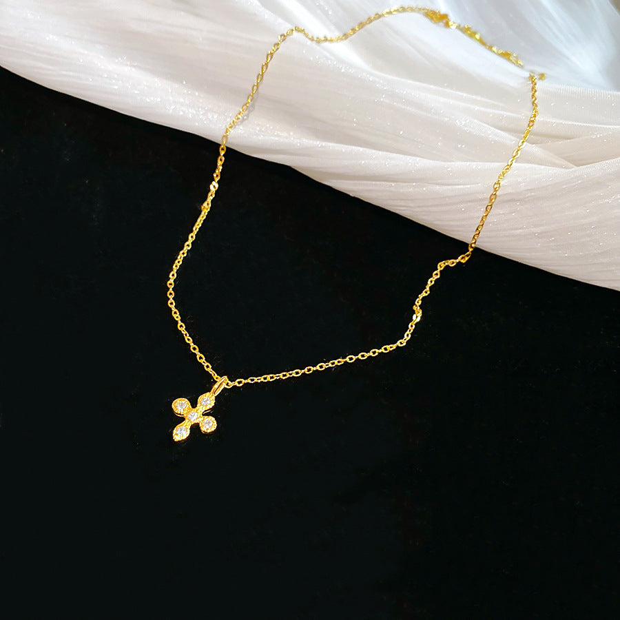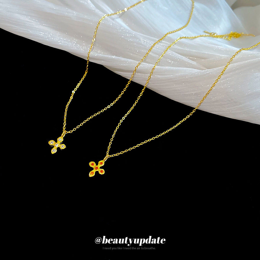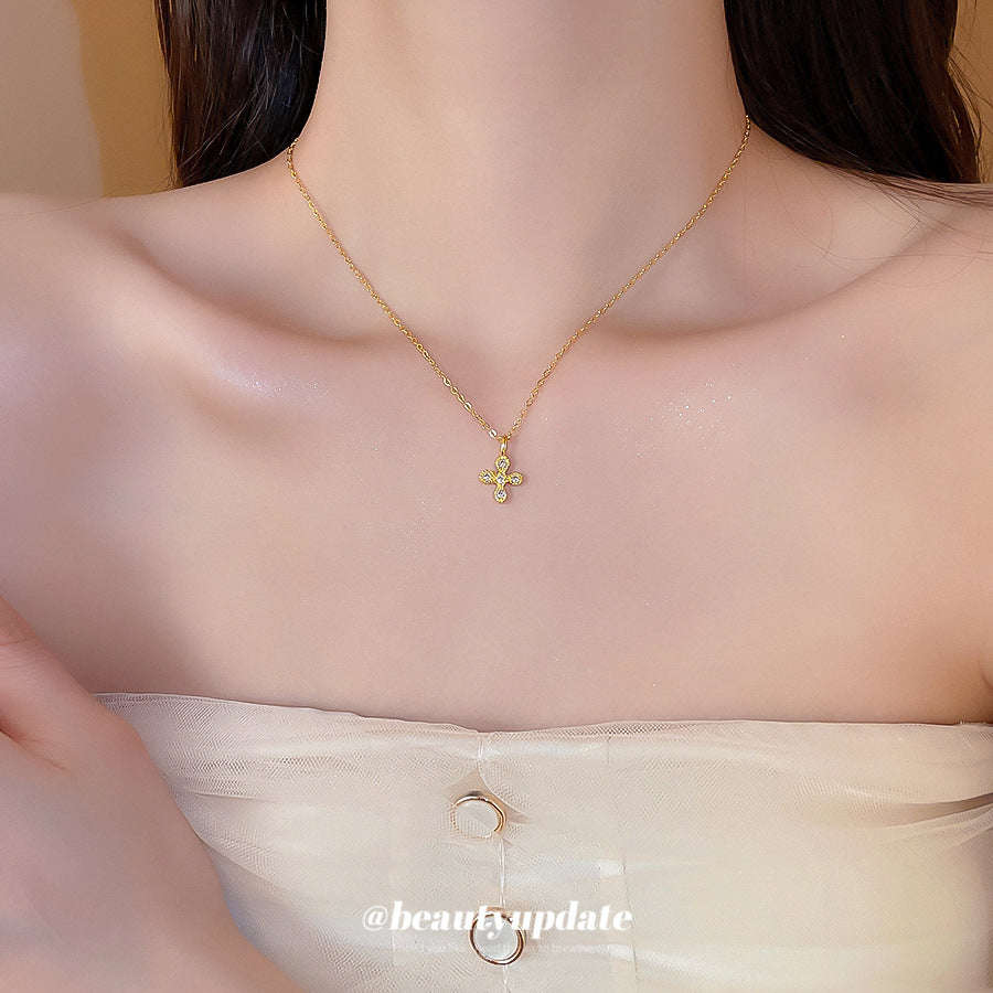 A廠【HN8850】鋯石十字架花紋項鍊韓式小眾簡約時尚百搭鎖骨鏈輕奢高級感項鍊女 25.05-4