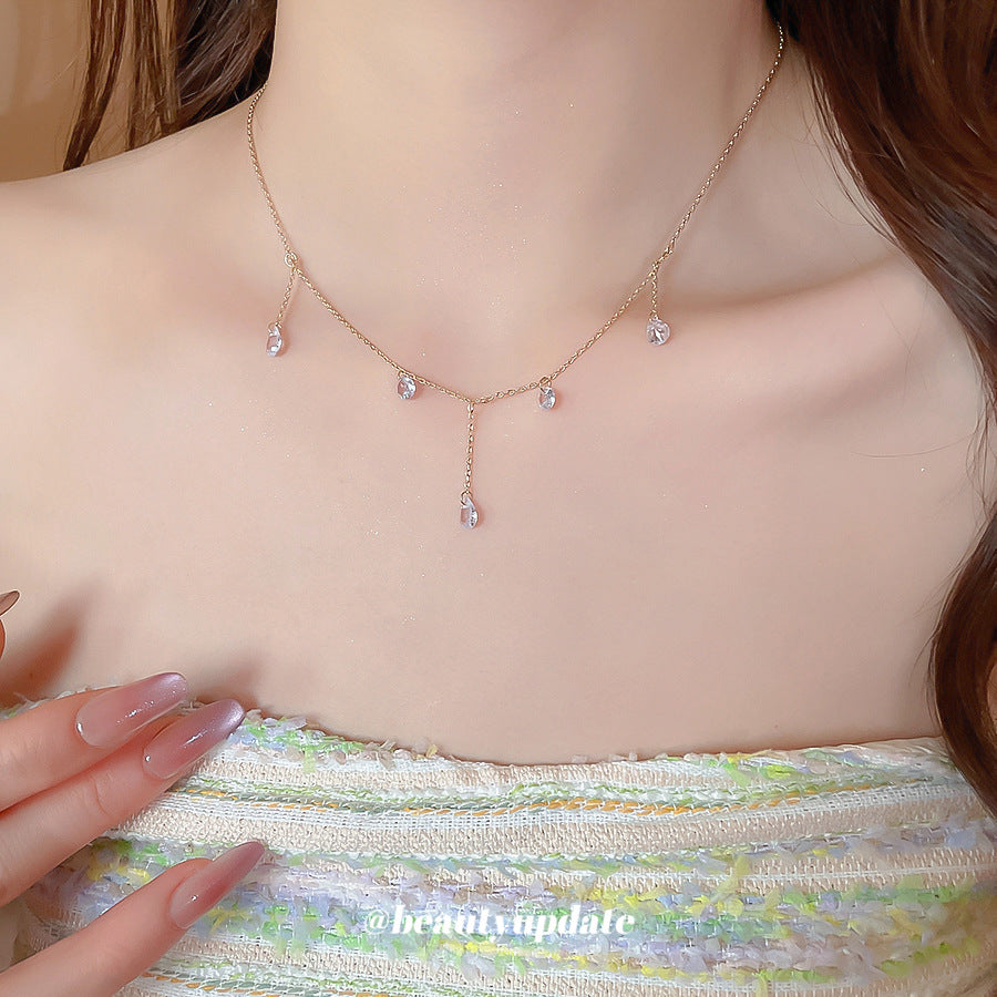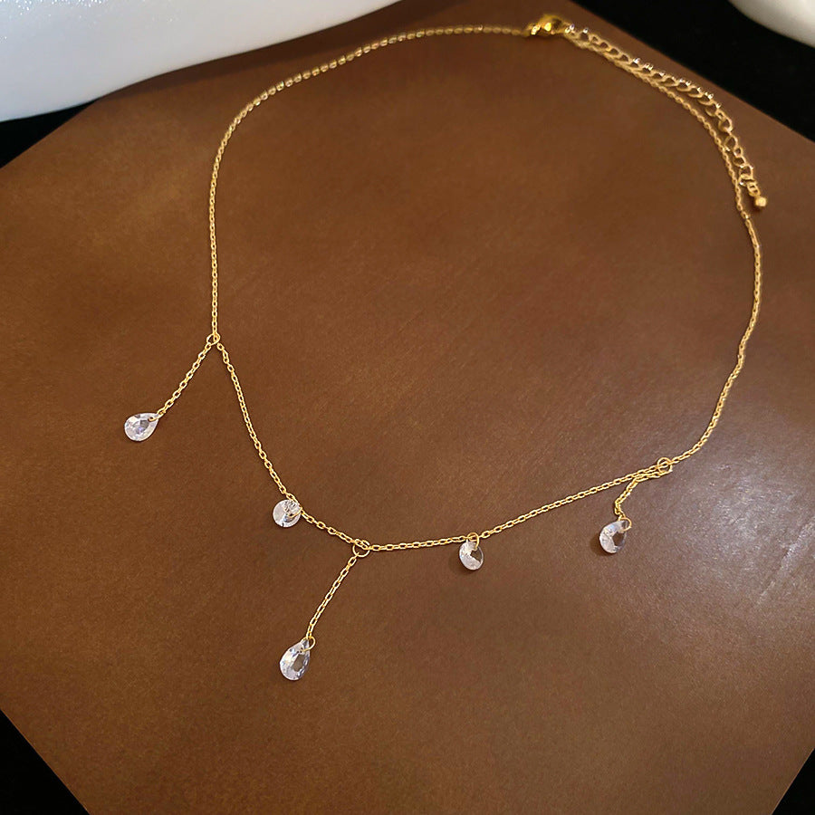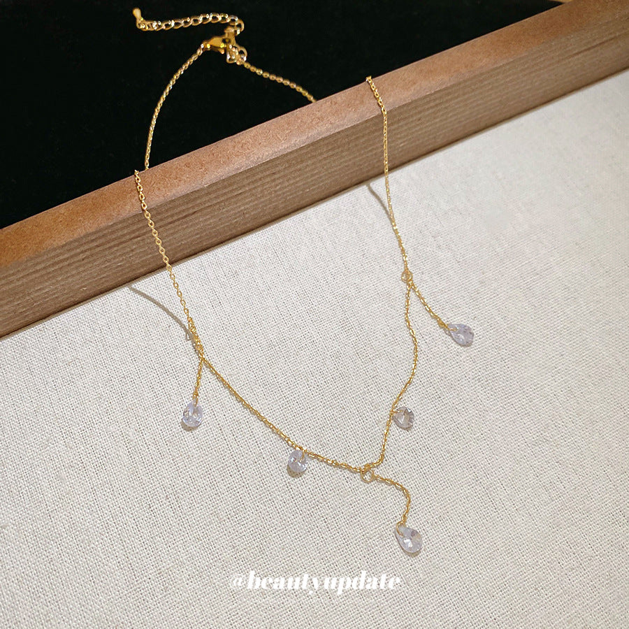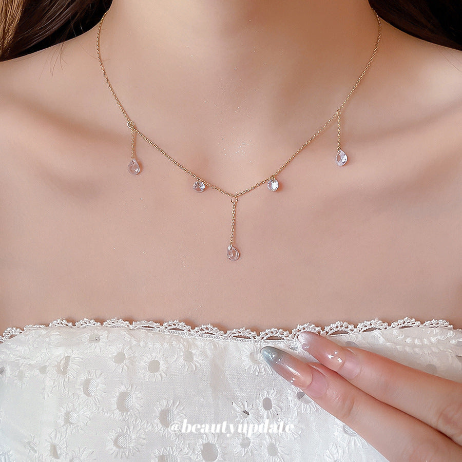 A廠【HN9085】鋯石水滴流蘇項鍊歐美跨境時尚簡約百搭氣質鎖骨鏈輕奢高級感頸鏈 25.07-1