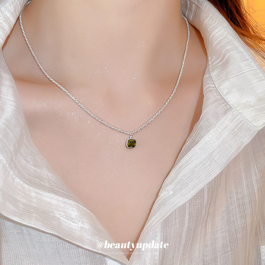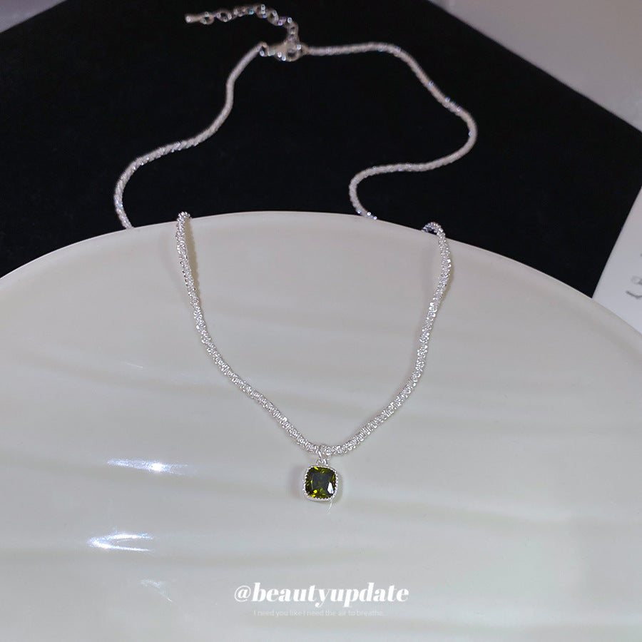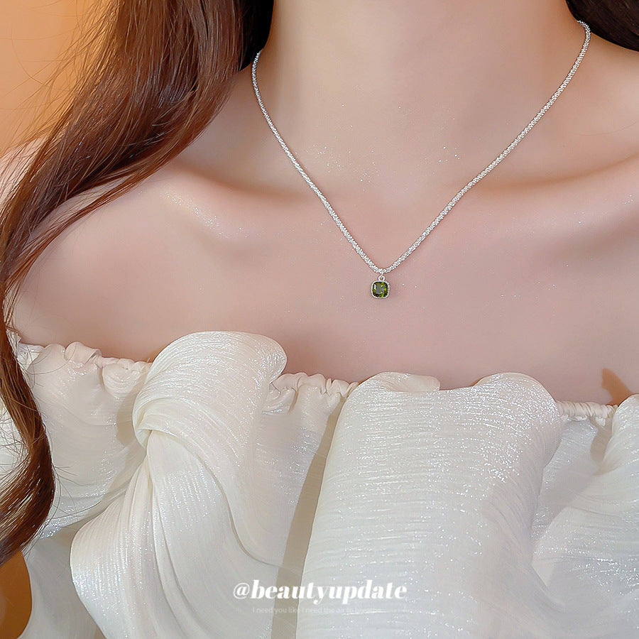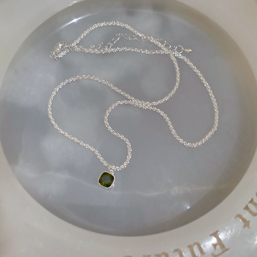 A廠【HN9280】素銀鋯石方形吊墜項鍊時尚簡約小眾設計感鎖骨鏈輕奢高級感項圈女 25.06-4