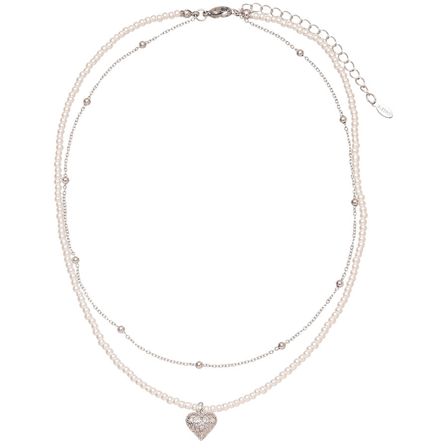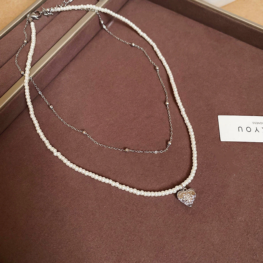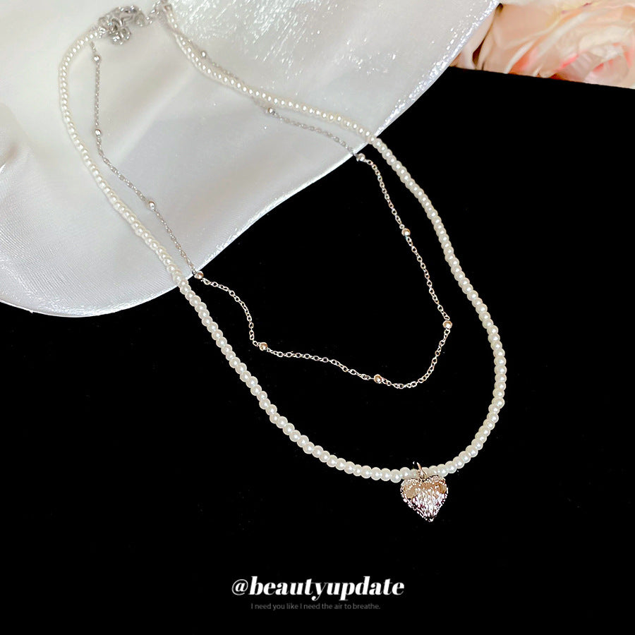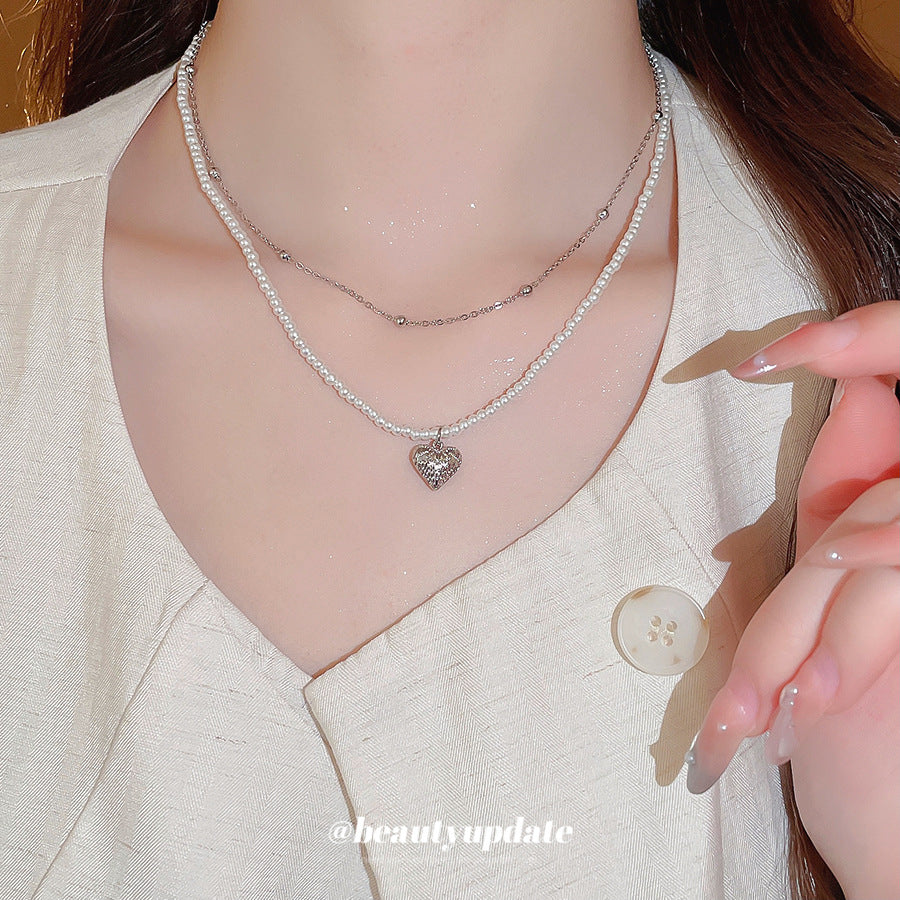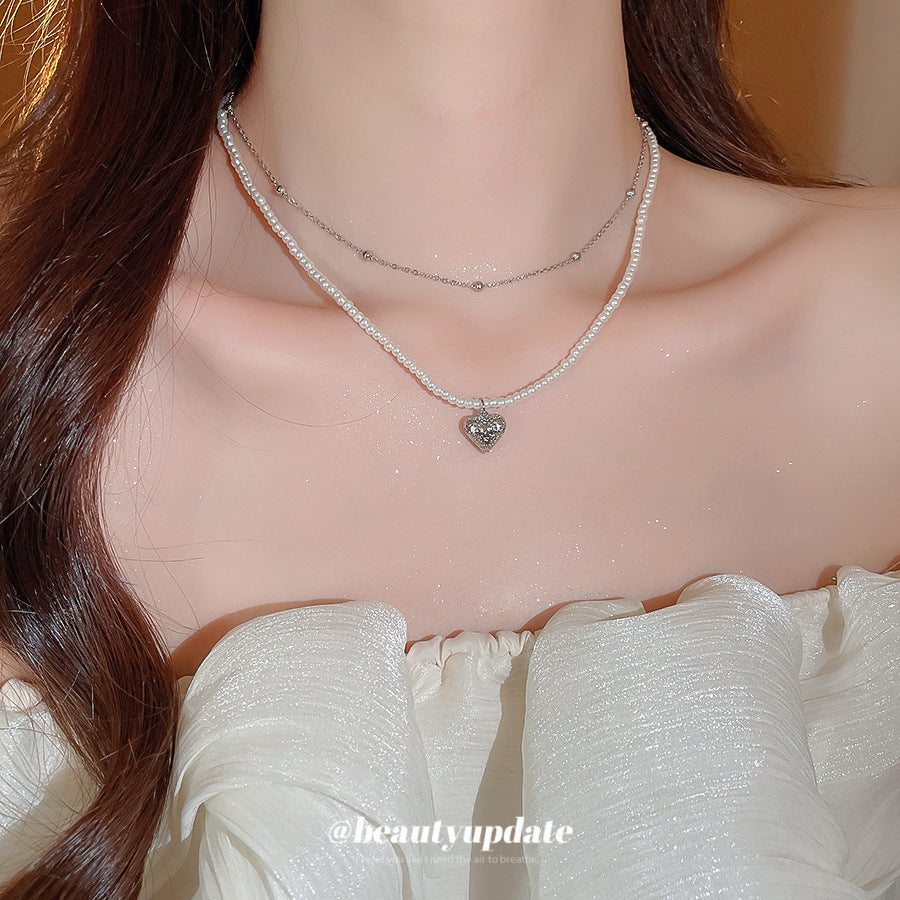 A廠【HN9286】珍珠愛心吊墜雙層項鍊時尚簡約小眾設計感鎖骨鏈輕奢高級感頸鍊女 25.06-4