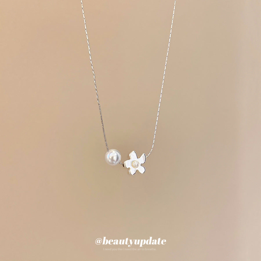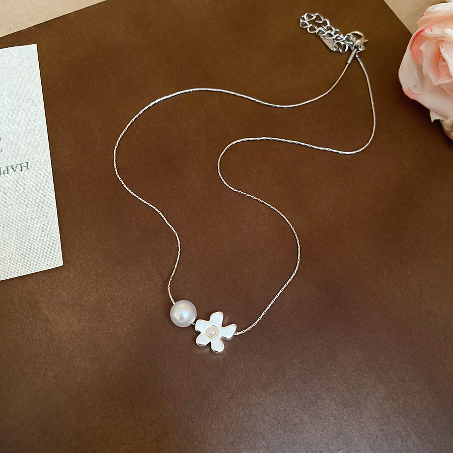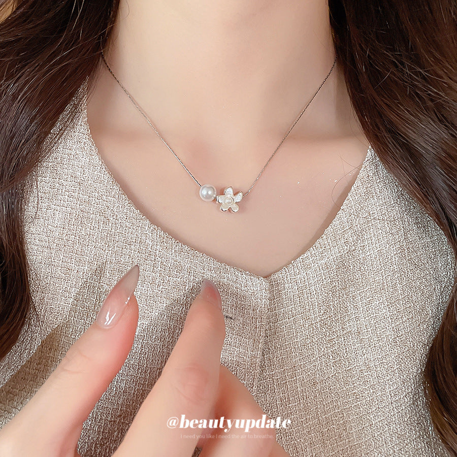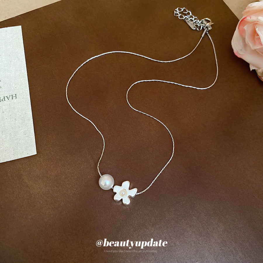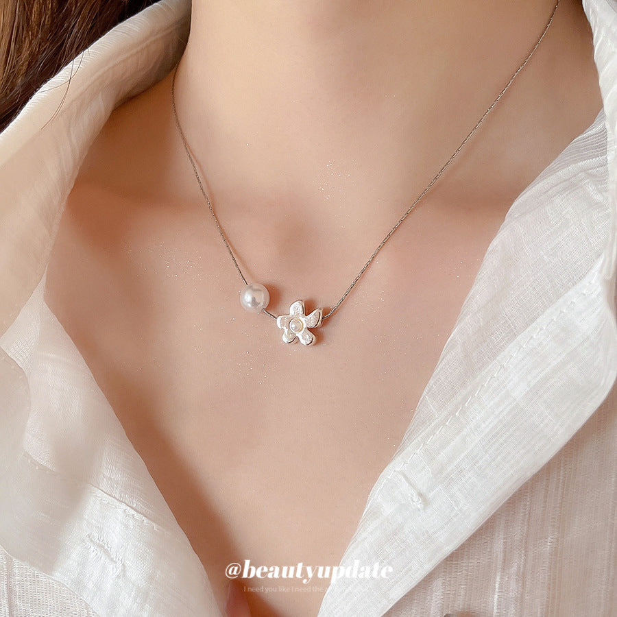 A廠【HN9350】韓國簡約珍珠花朵吊墜項鍊小清新氣質時尚百搭鎖骨鏈甜美精緻頸鍊 25.07-1