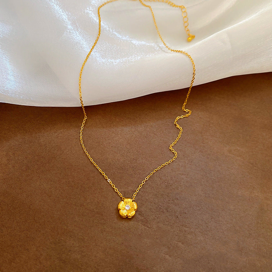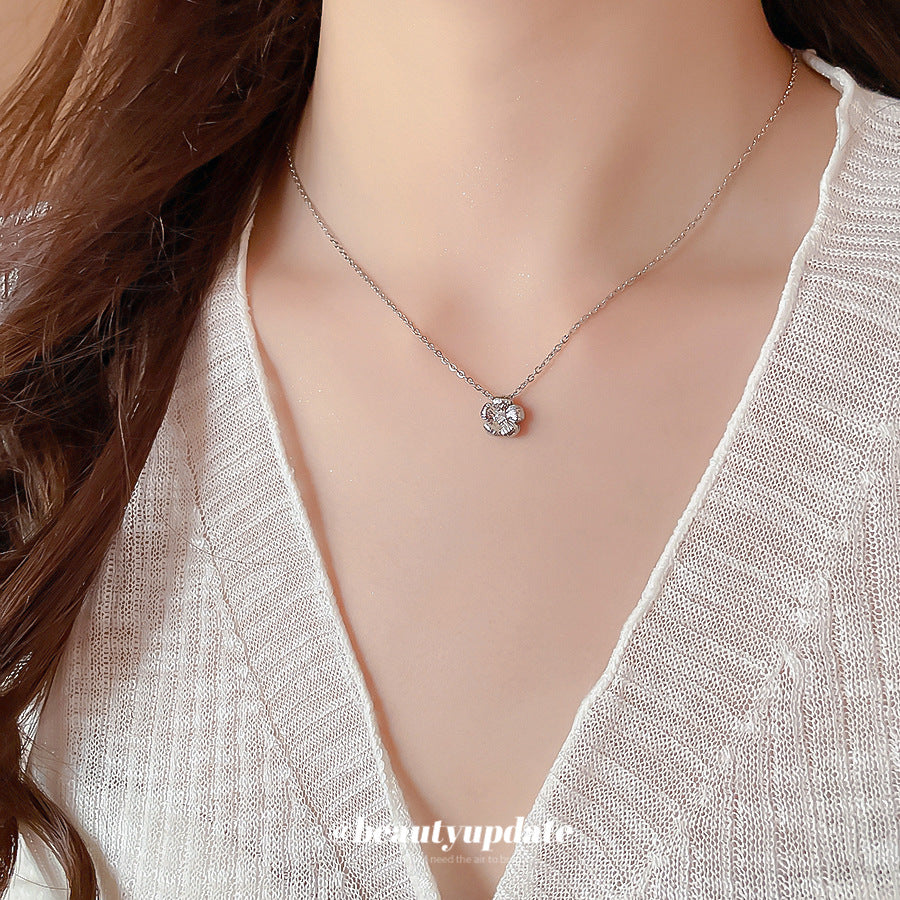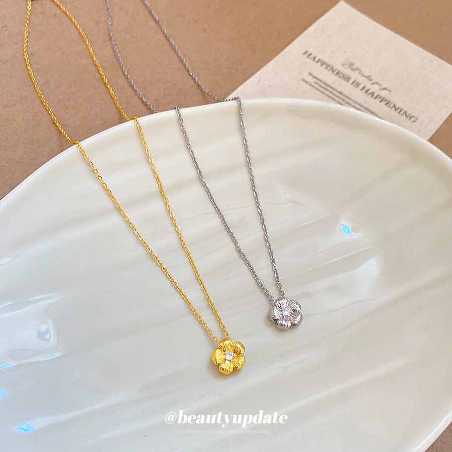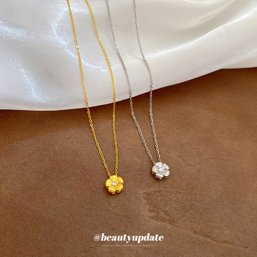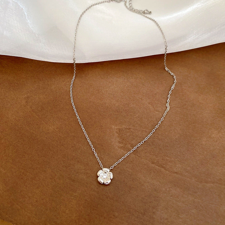 A廠【HN9438】鋯石紋路花朵吊墜項鍊歐美時尚簡約百搭氣質鎖骨鏈小眾設計感項鍊 25.07-2