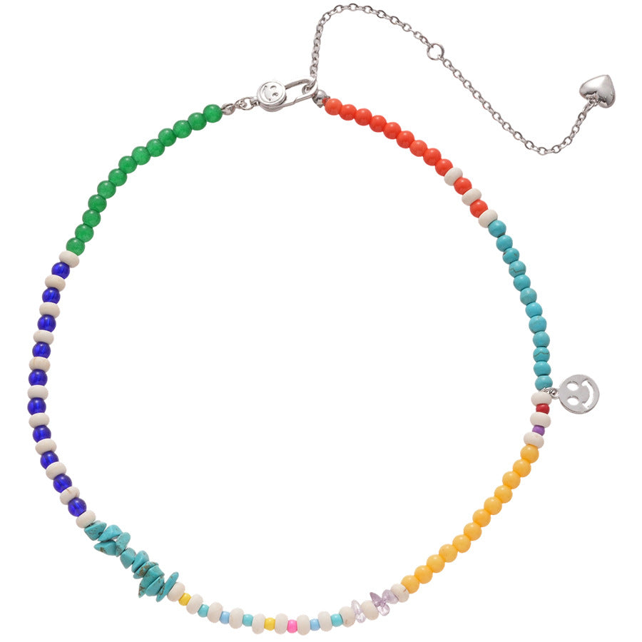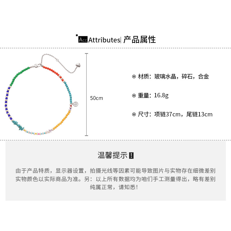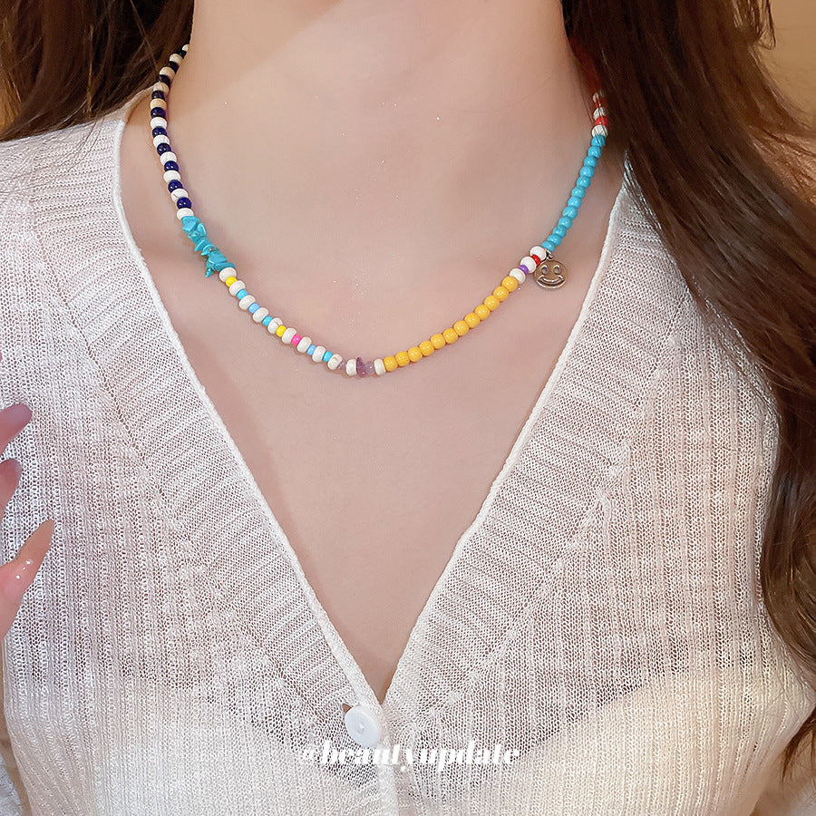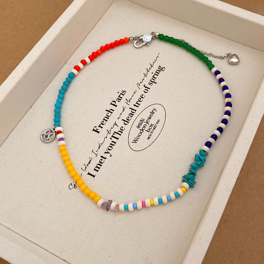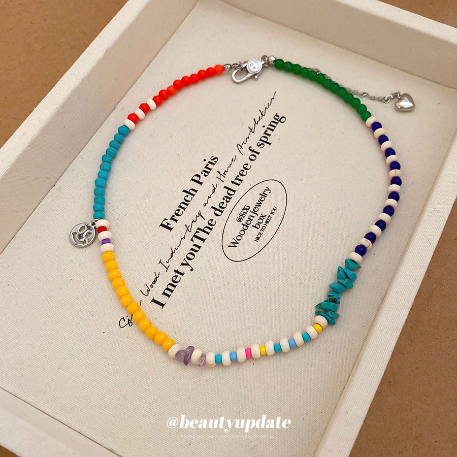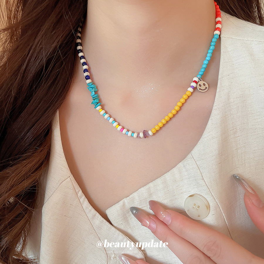 A廠【HN9443】彩色玻璃水晶碎石笑臉吊墜項鍊多巴胺甜美鎖骨鏈小眾設計感項鍊飾女 25.07-2