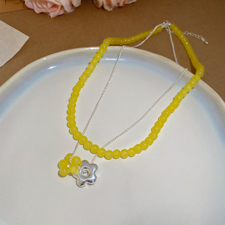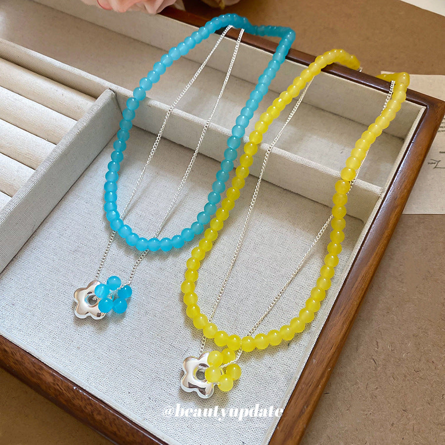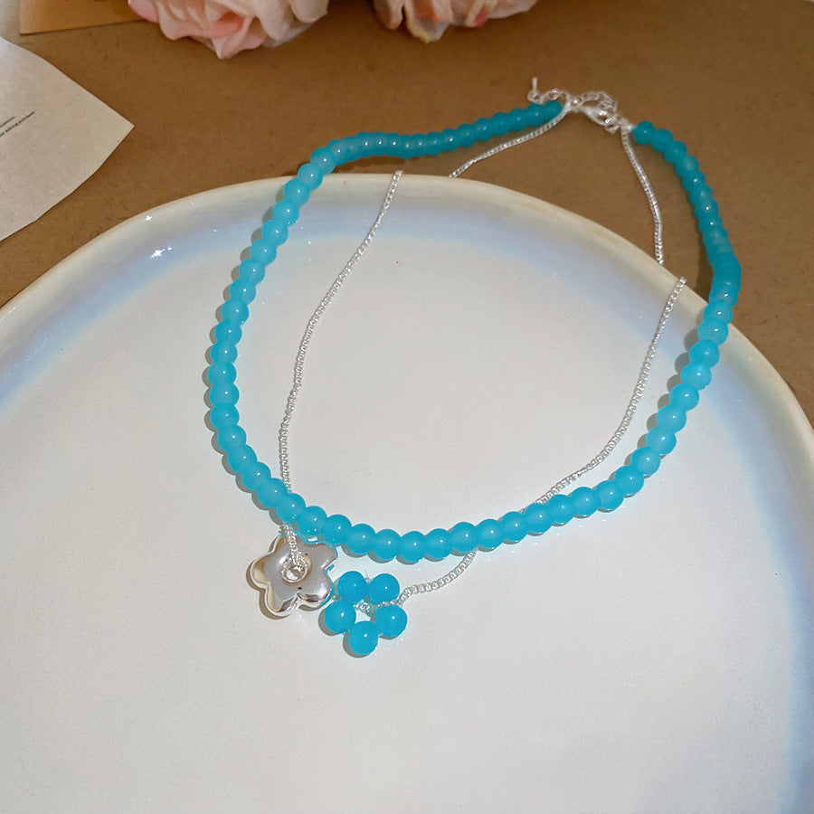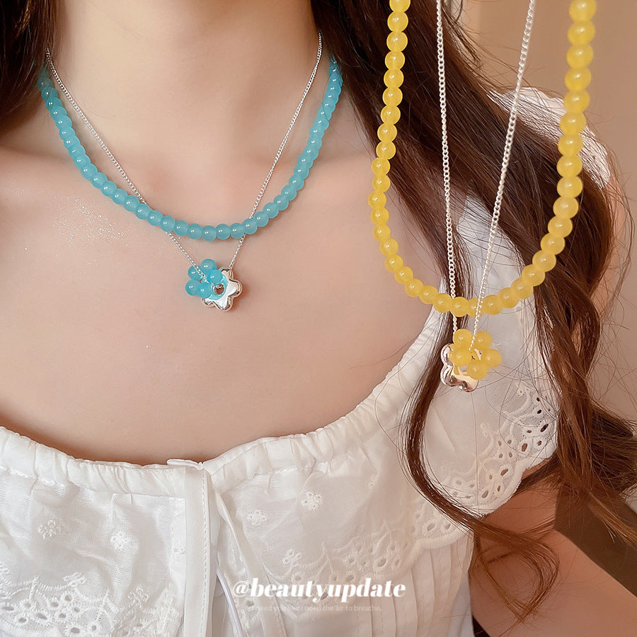 A廠【HN9496】水晶花朵串珠雙層項鍊森系小清新百搭氣質鎖骨鏈小眾設計感頸鍊女 25.07-2