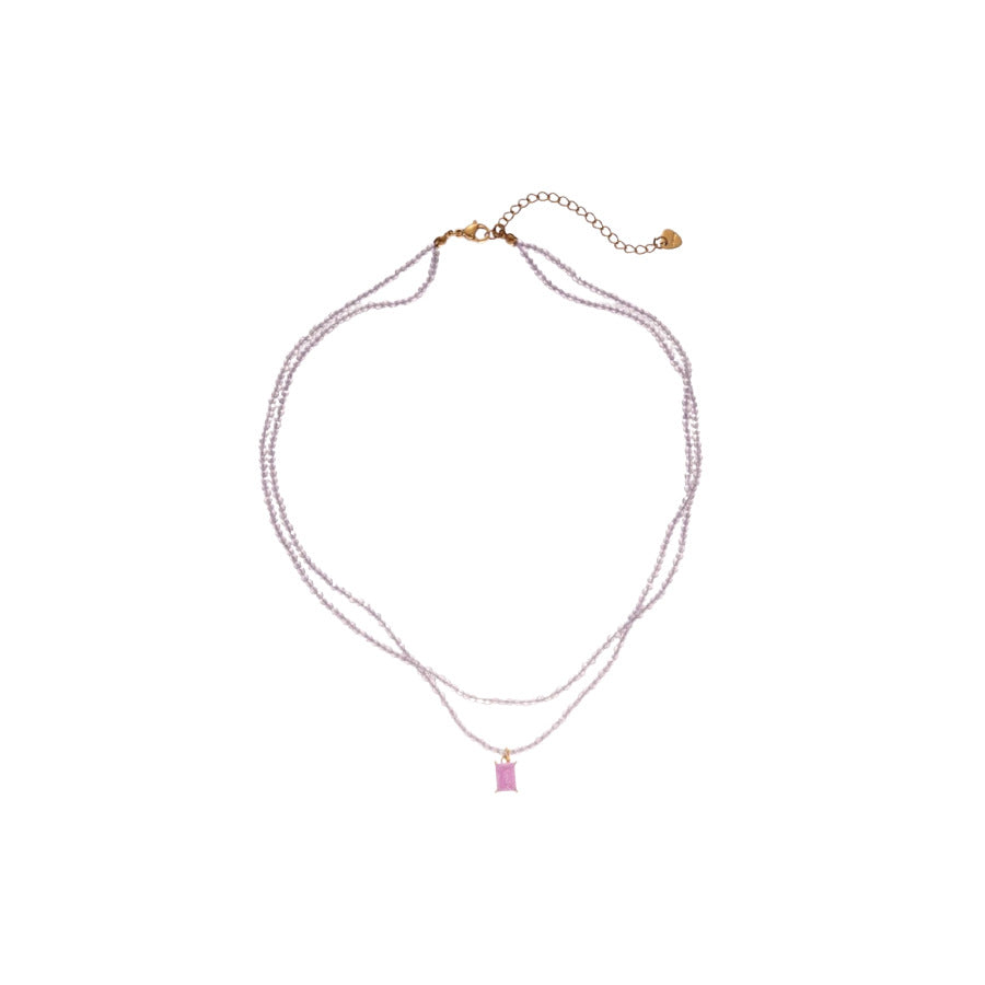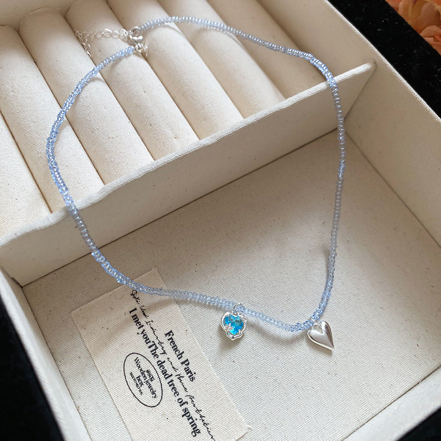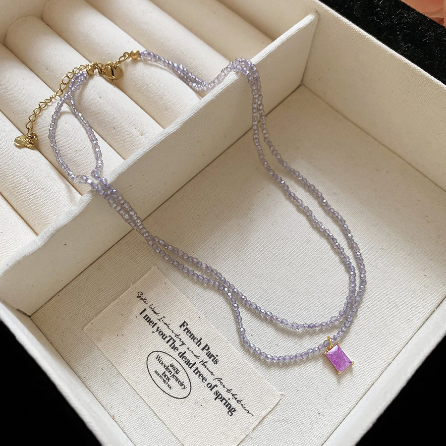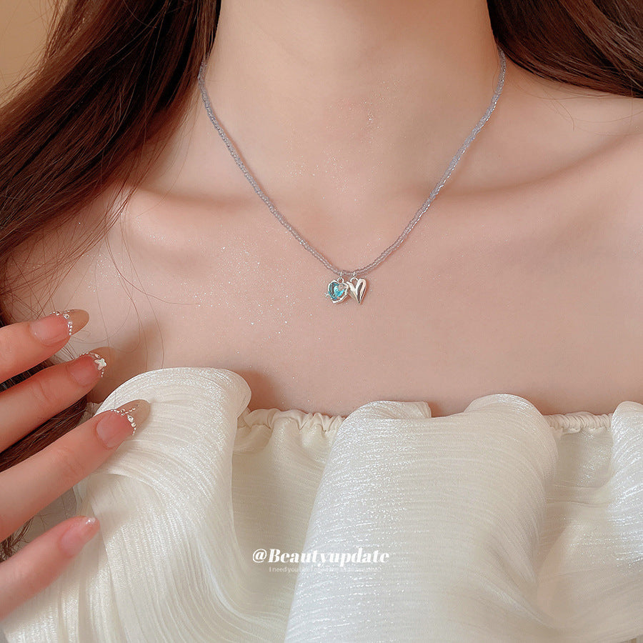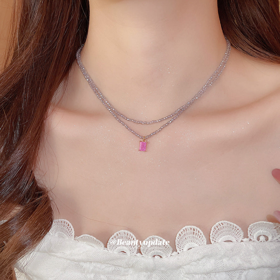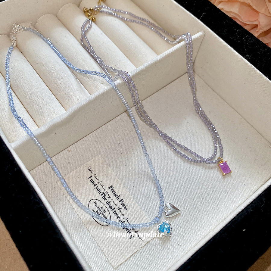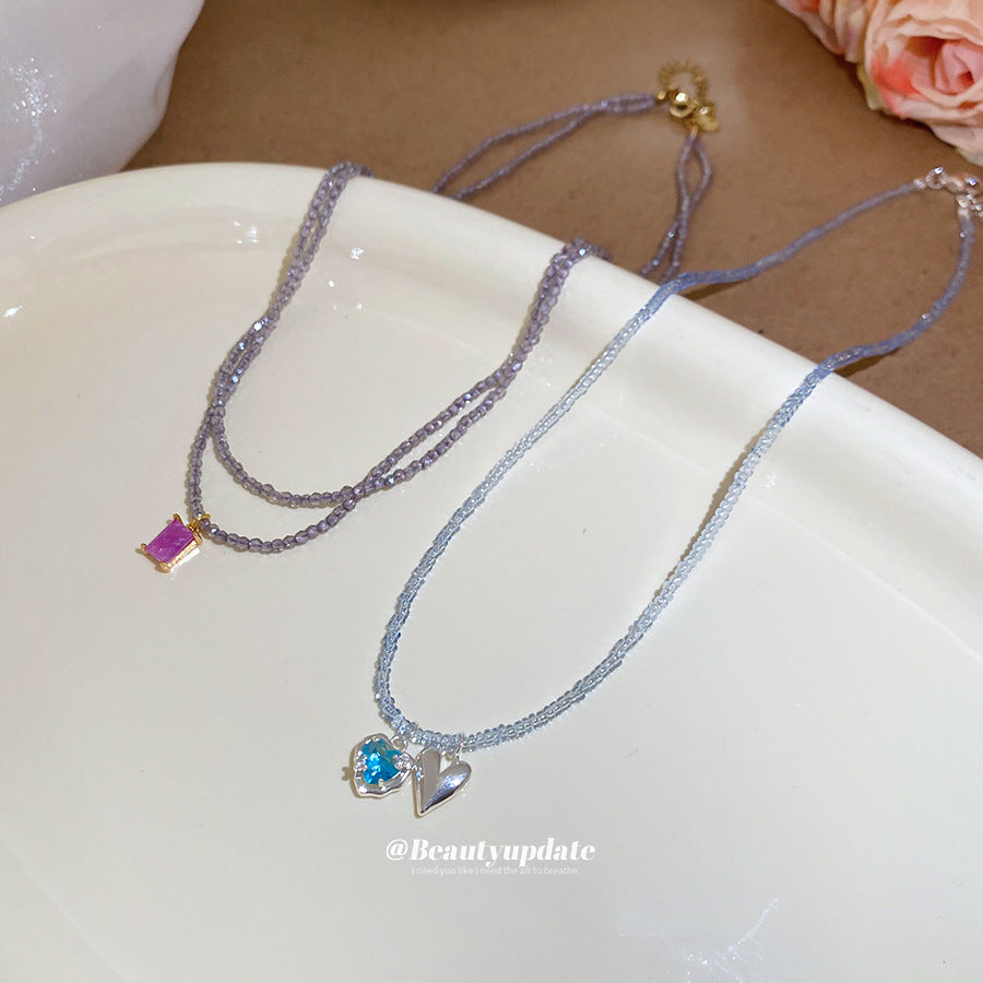 A廠【HN9534】水晶串珠鋯石愛心方形吊墜項鍊小清新甜美鎖骨鏈輕奢高級感頸鍊女 25.07-3