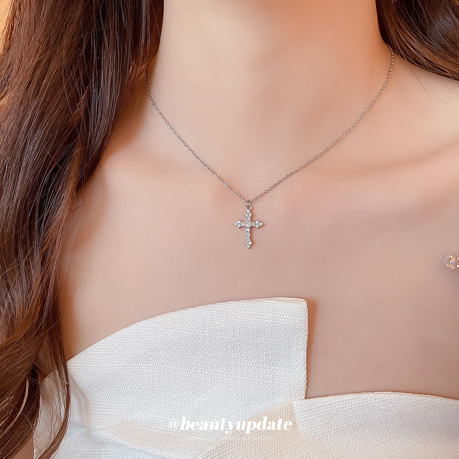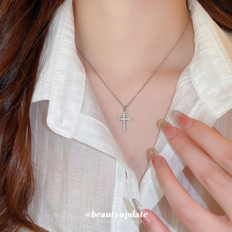 A廠【HN9541】日韓新款十字架鑲鑽項鍊輕奢高級感鎖骨鏈精緻時尚項鍊設計感小眾 25.07-3