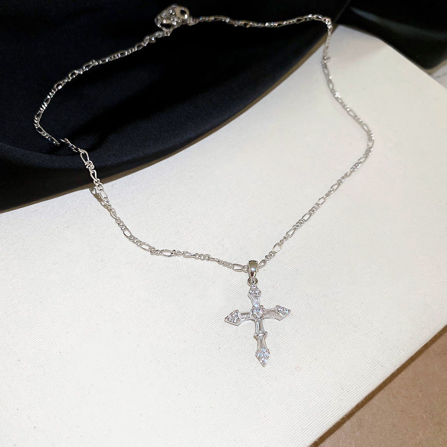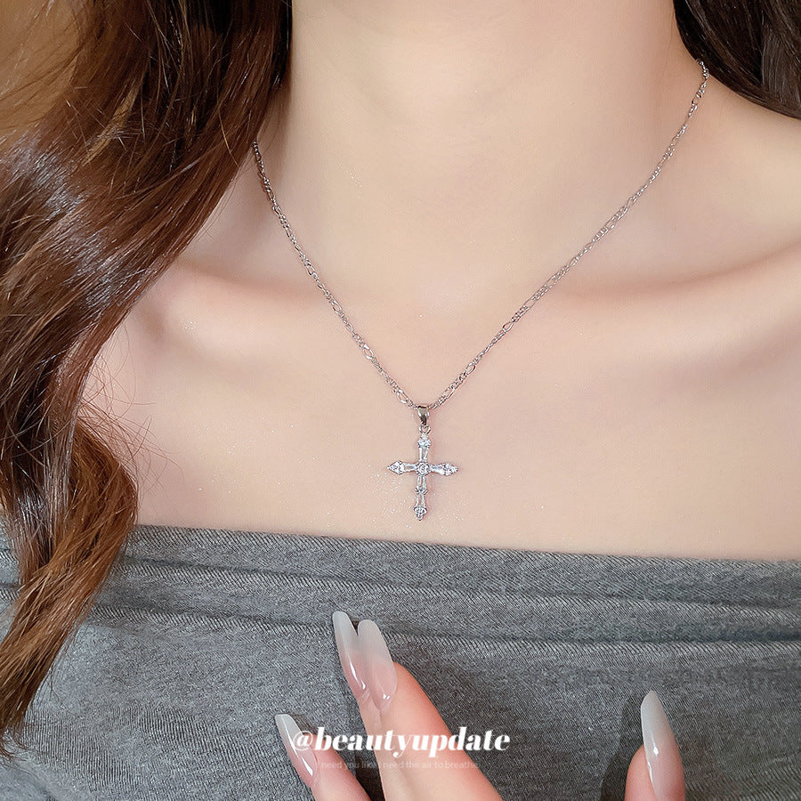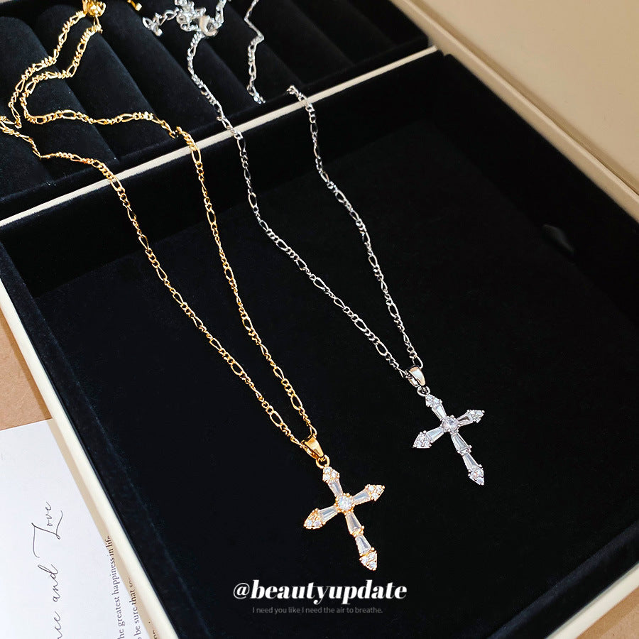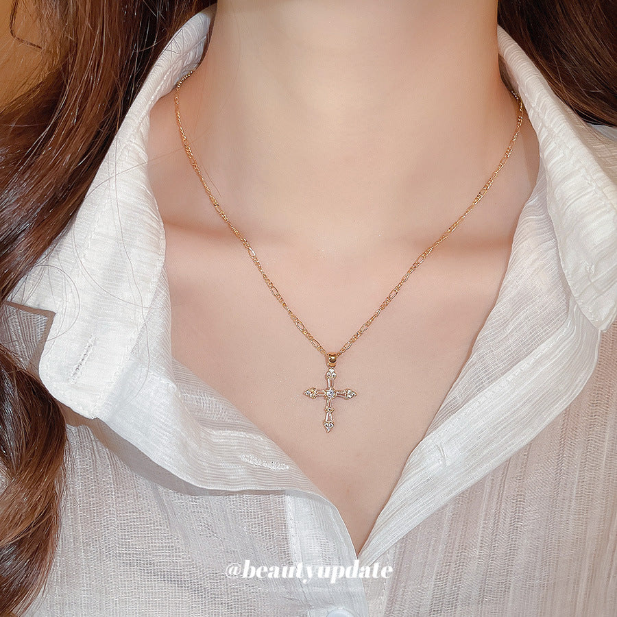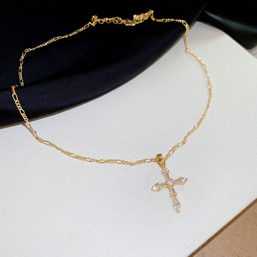 A廠【HN9623】18k真金電鍍鋯石十字架吊墜項鍊跨境時尚鎖骨鏈輕奢高級感項鍊女 25.08-1