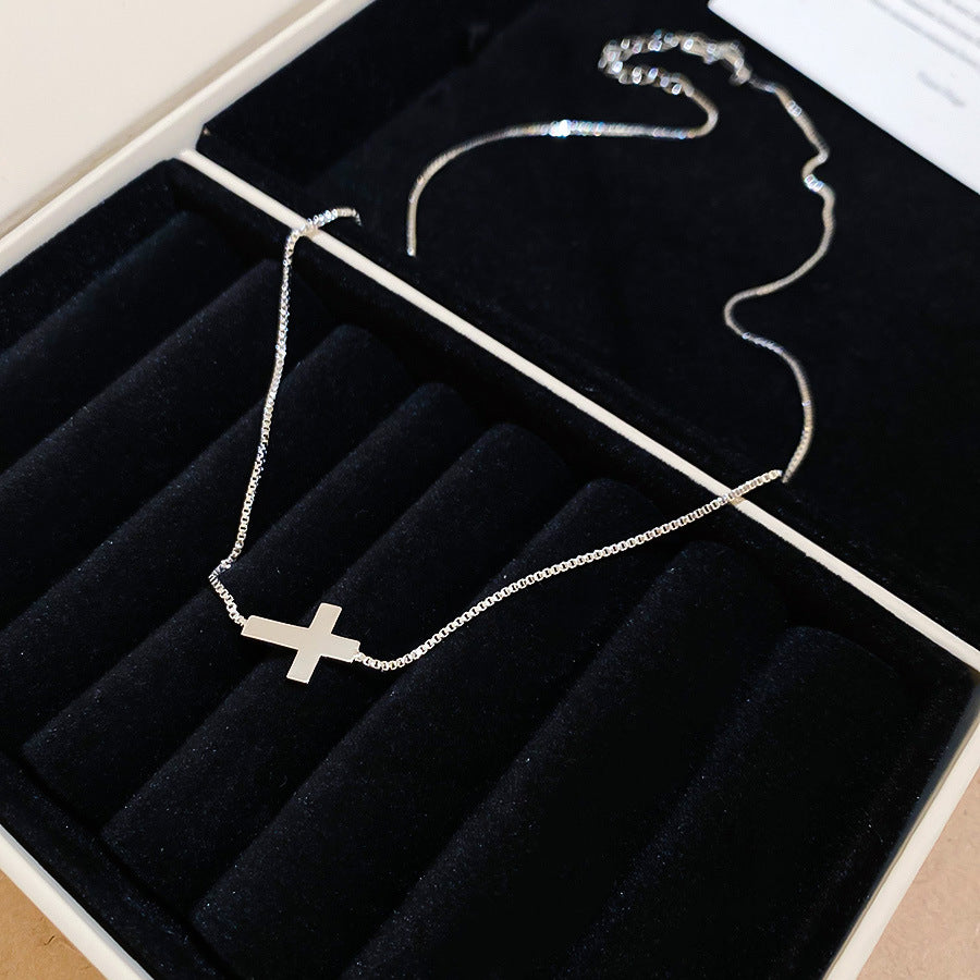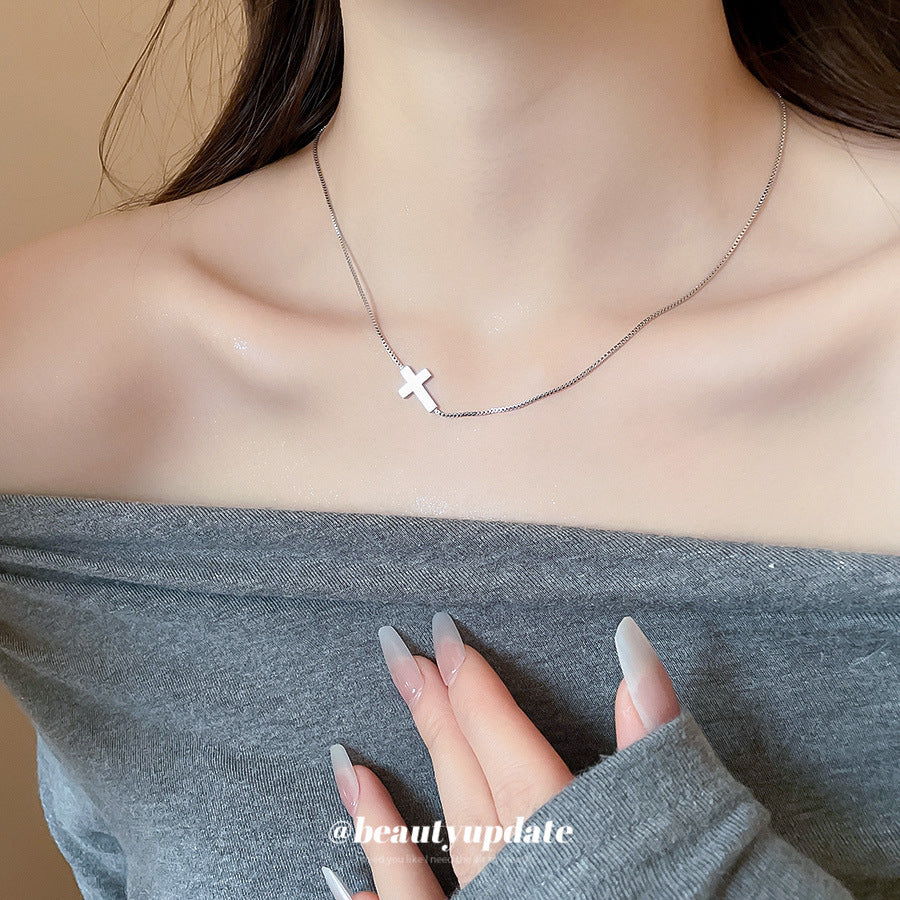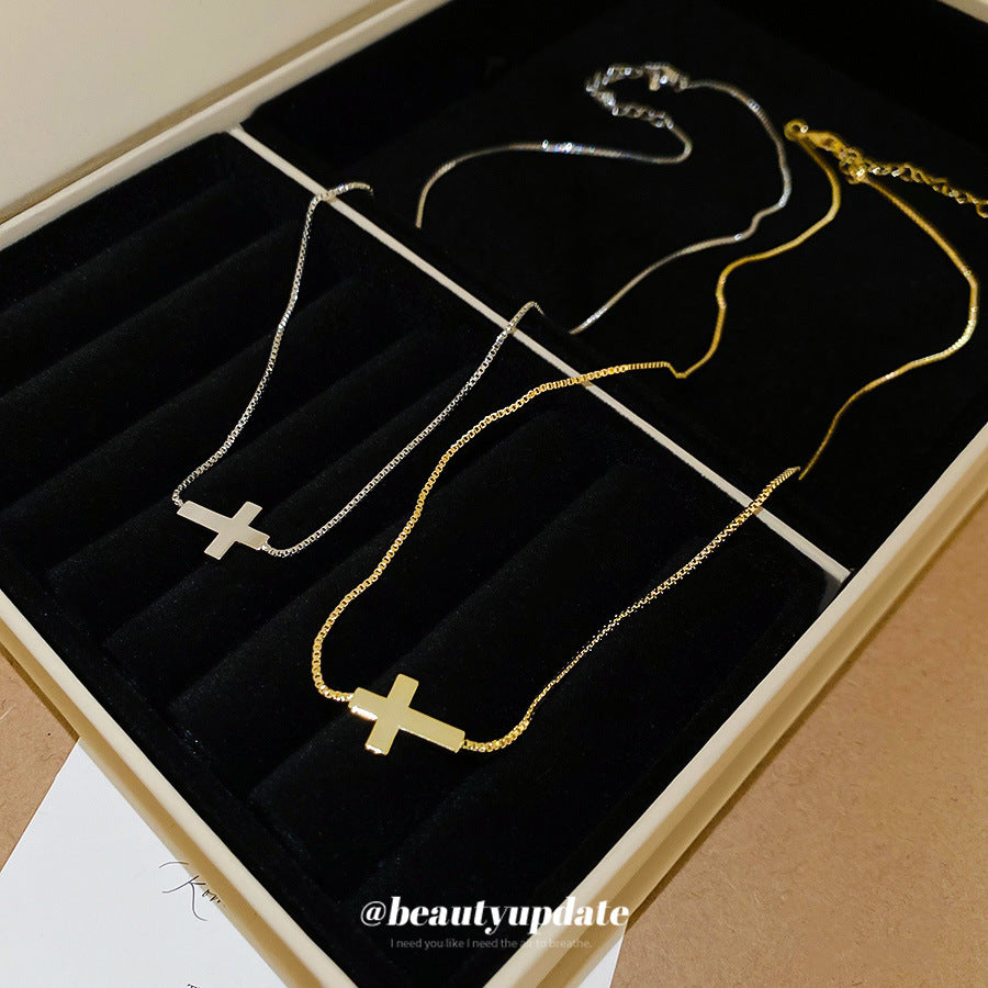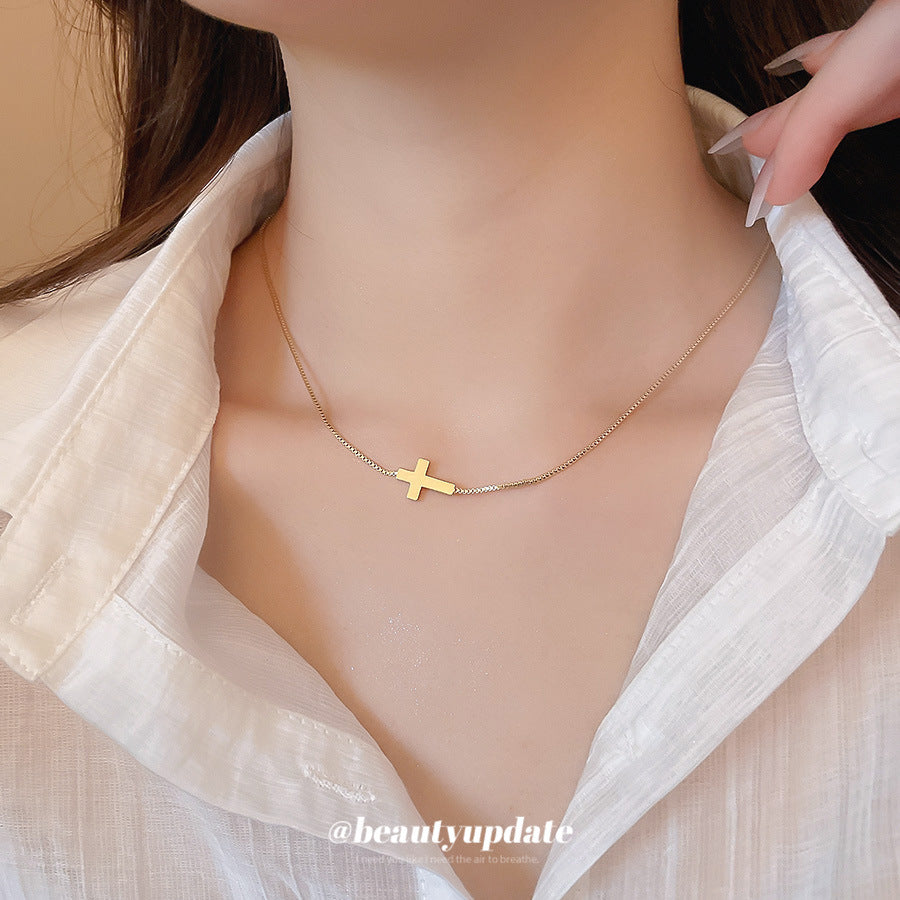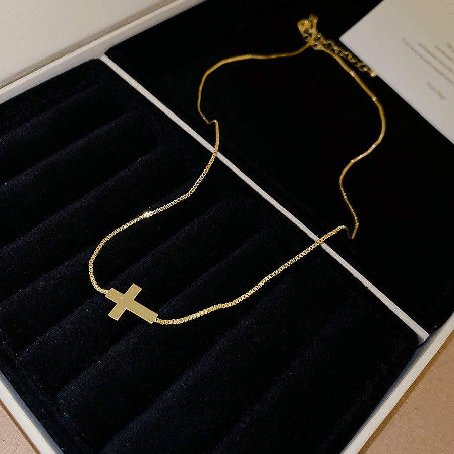 A廠【HN9624】18k真金電鍍十字架吊墜項鍊歐美金屬感鎖骨鏈時尚小眾設計感頸鍊 25.08-1