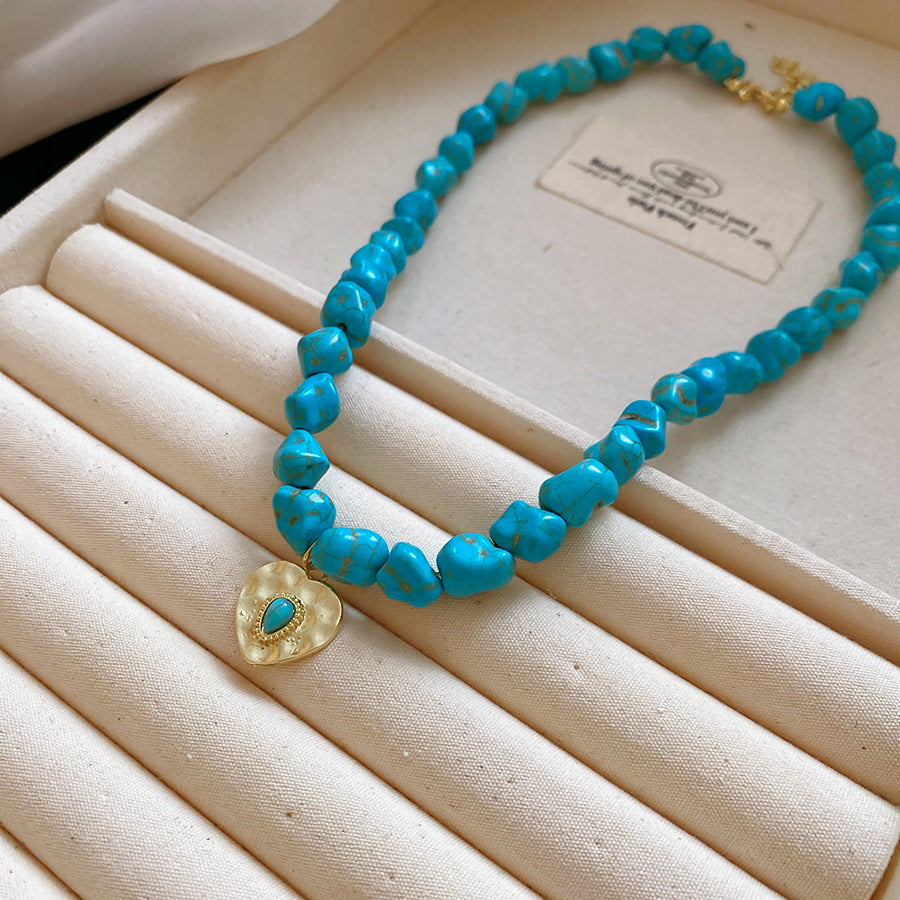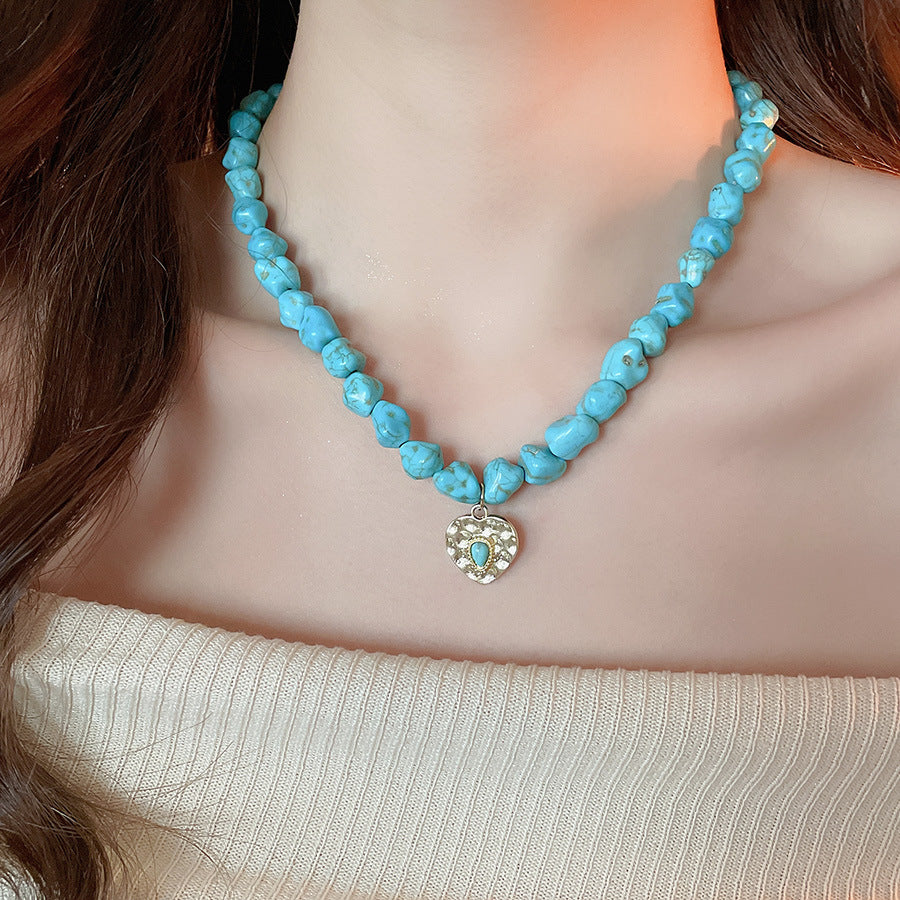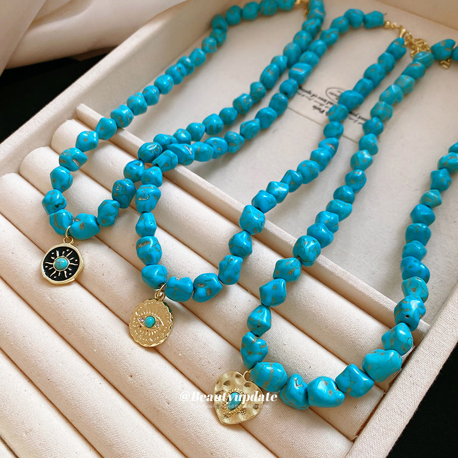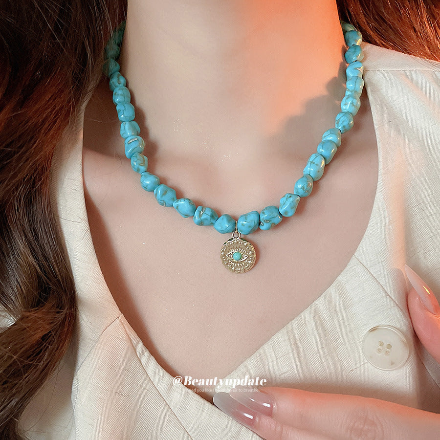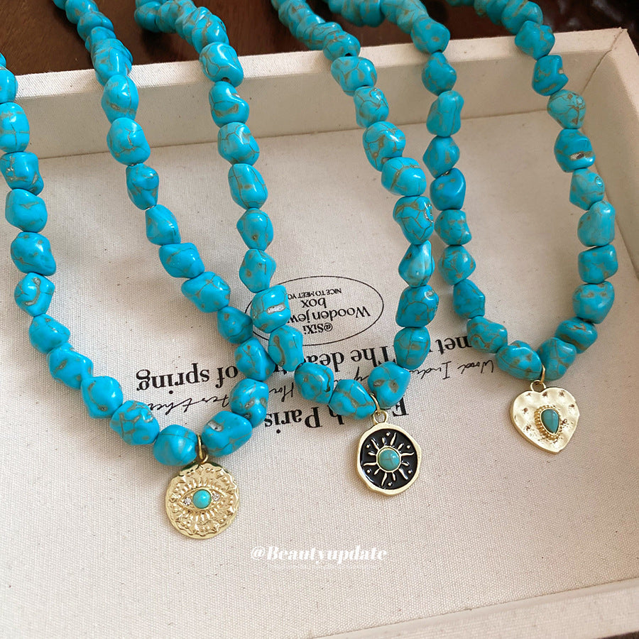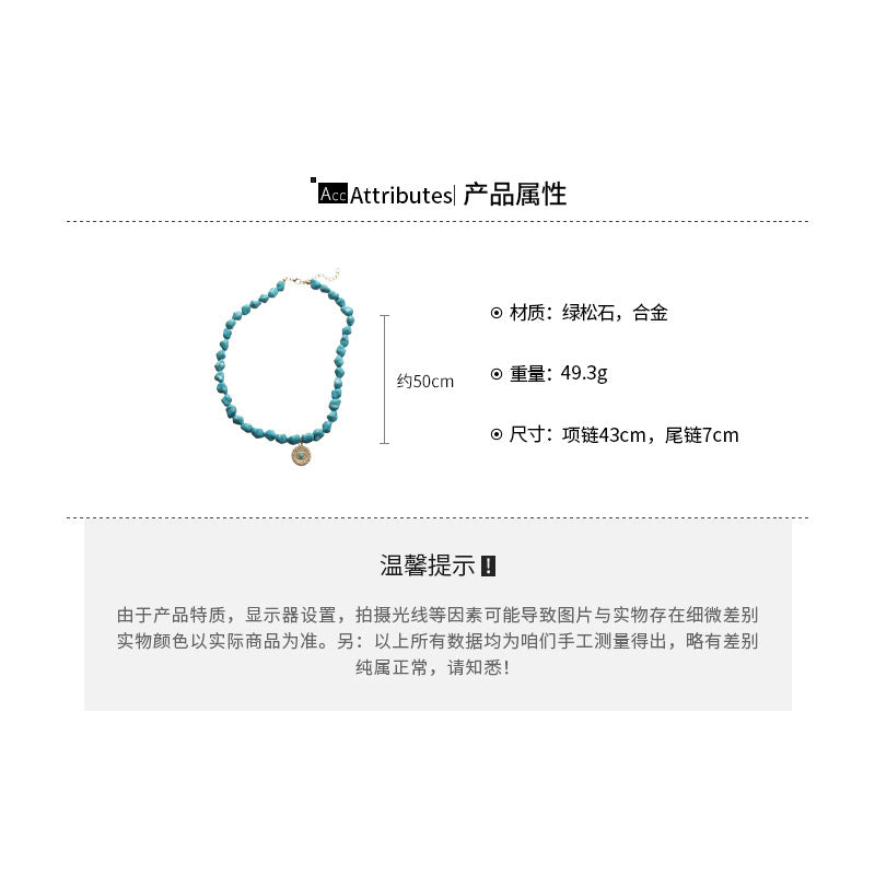 A廠【HN9761】綠石頭串珠圓形心型眼睛吊墜項鍊法式復古鎖骨鏈小眾設計感項鍊飾女 25.08-3