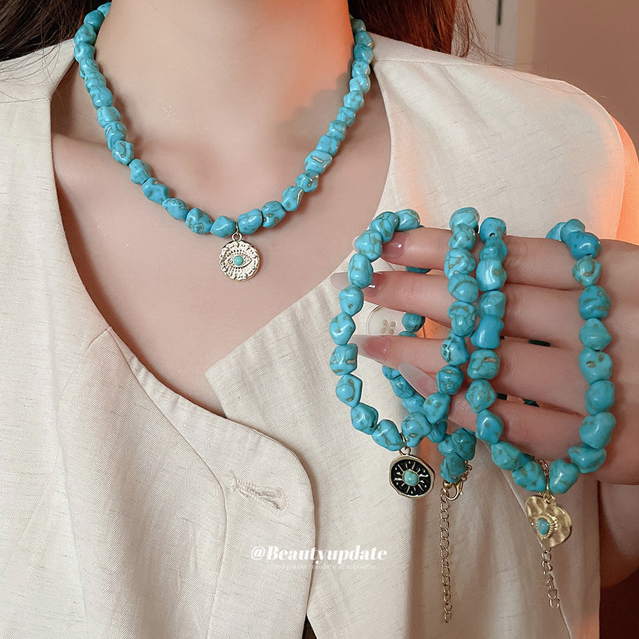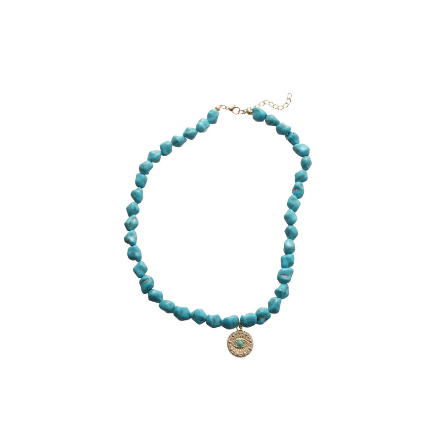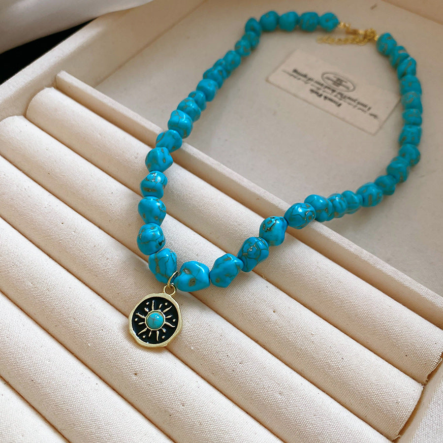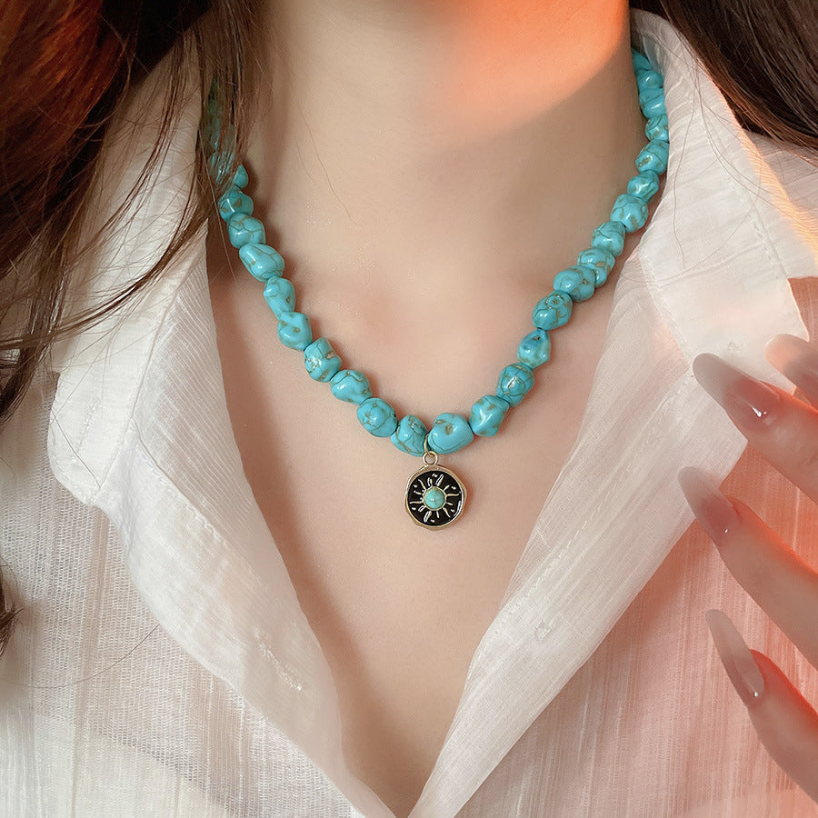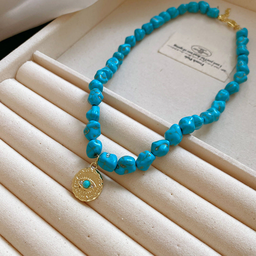A廠【HN9761】綠石頭串珠圓形心型眼睛吊墜項鍊法式復古鎖骨鏈小眾設計感項鍊飾女 25.08-3