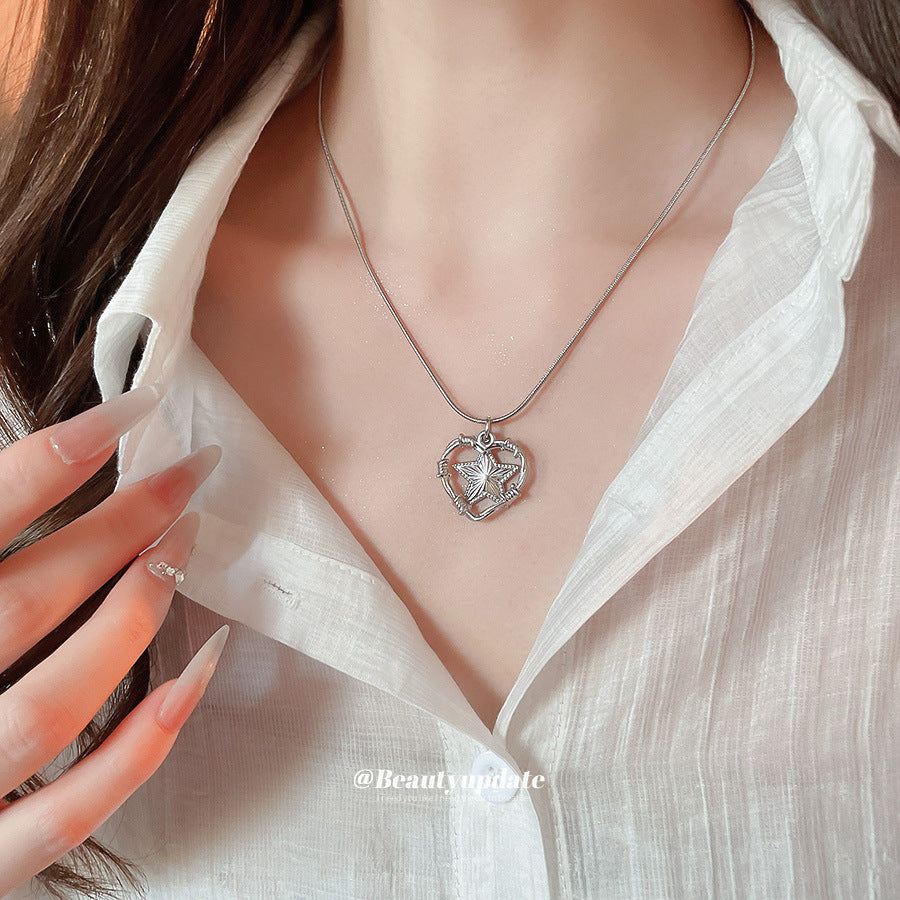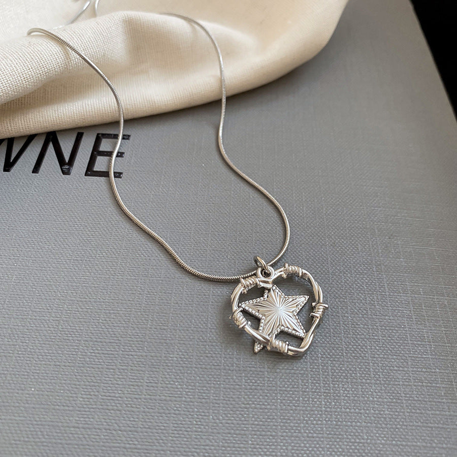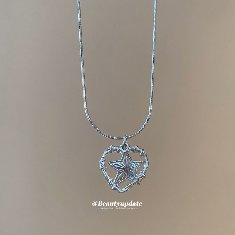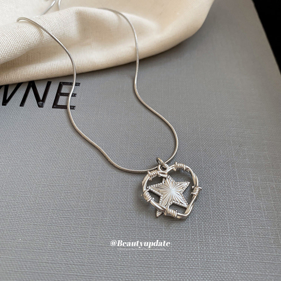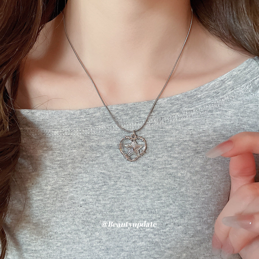 A廠【HN9779】不銹鋼星星愛心吊墜項鍊時尚冷淡風氣質鎖骨鍊個性小眾設計感項鍊 25.08-3