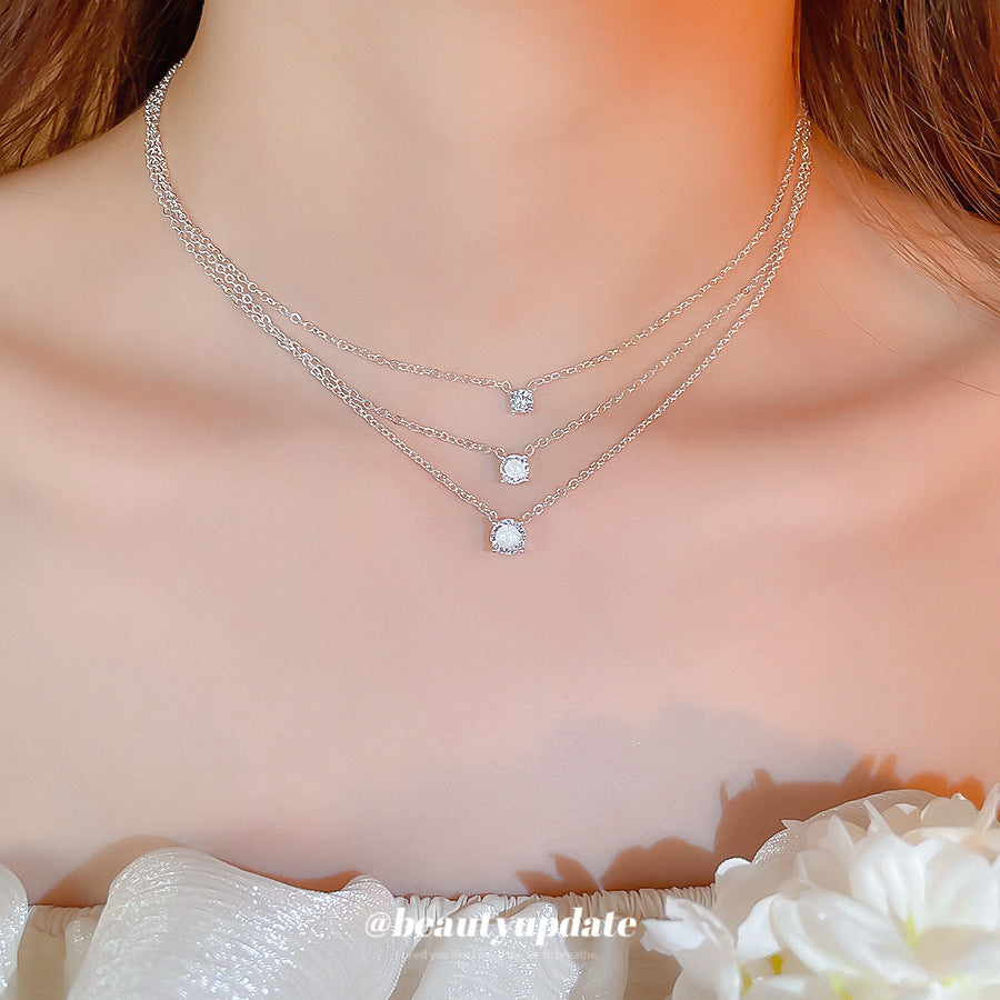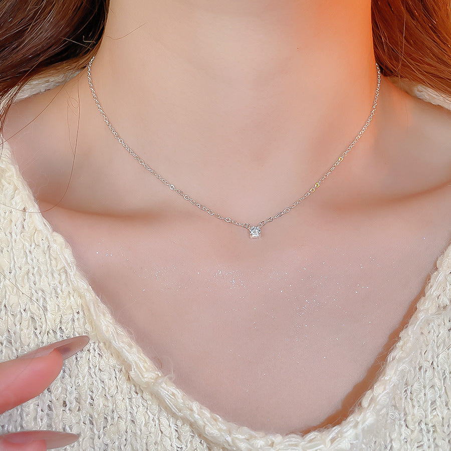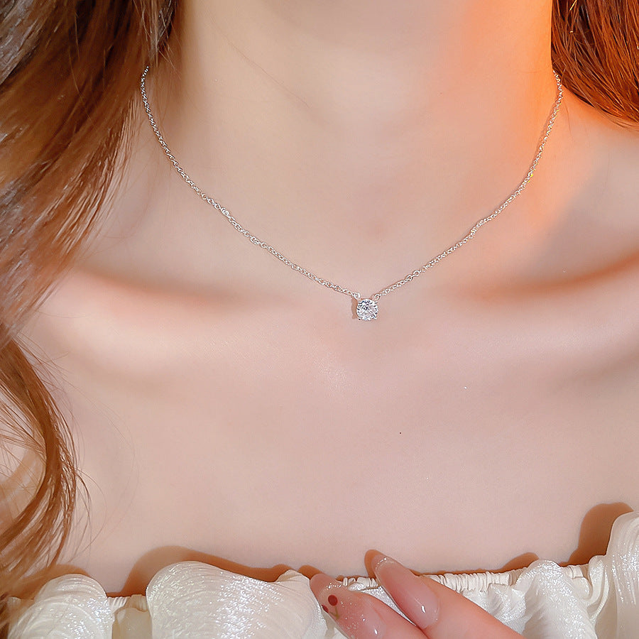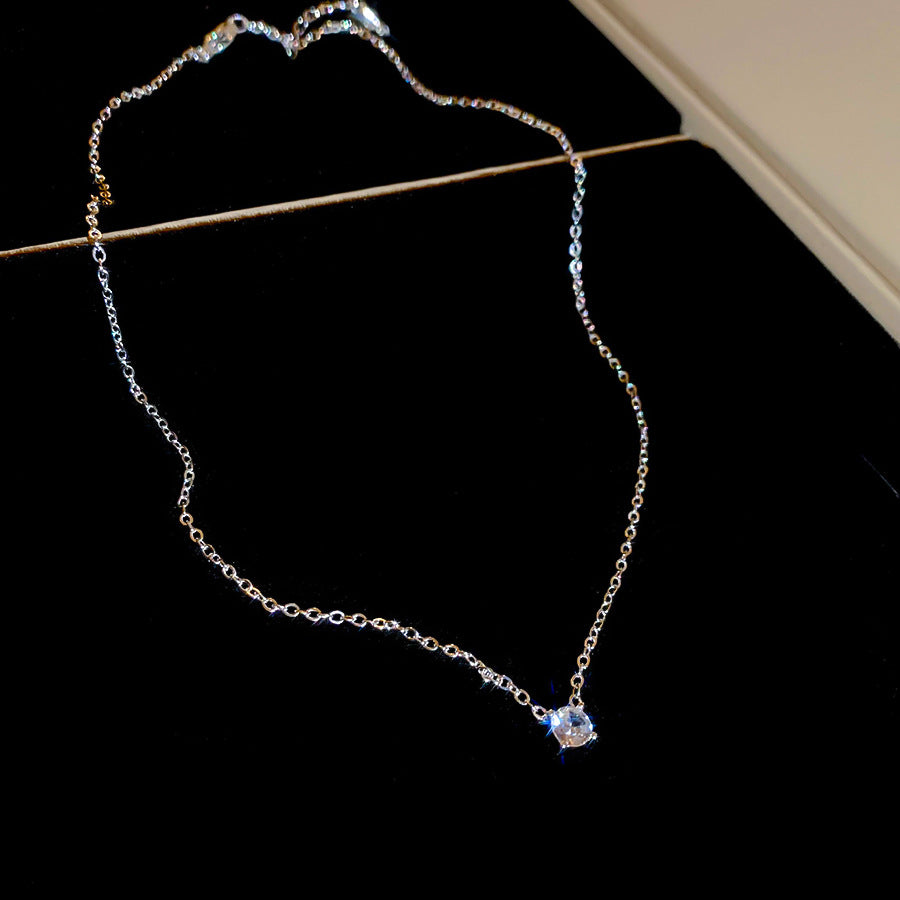 A廠【HN9823】超閃鋯石幾何圓形吊墜項鍊時尚簡約百搭氣質鎖骨鏈輕奢高級感頸鏈 25.08-5