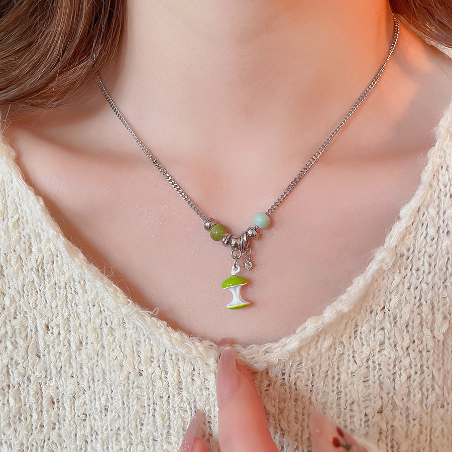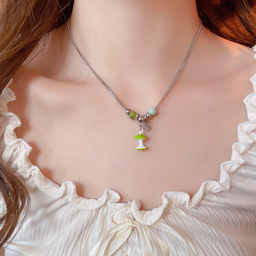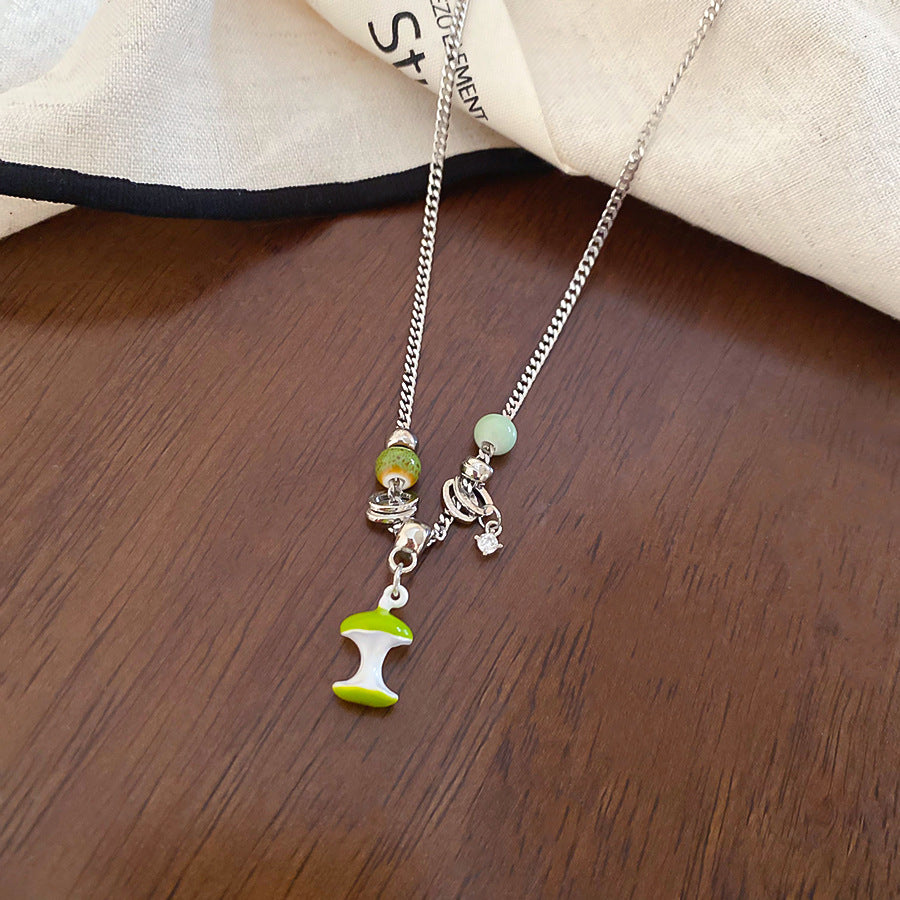 A廠【HN9833】鈦鋼陶瓷蘋果吊墜項鍊甜美可愛清新趣味鎖骨鏈小眾設計感百搭頸鍊 25.08-5