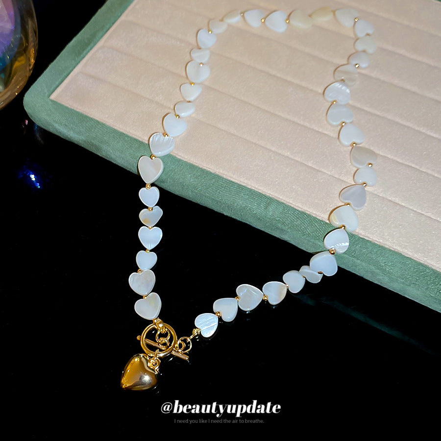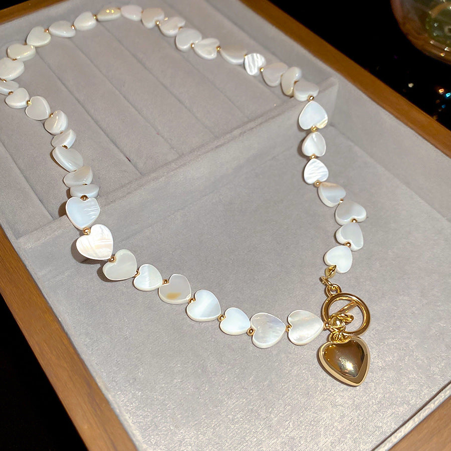 A廠【HN9935】貝母愛心吊墜貝殼毛衣項鍊女高端輕奢小眾高級感氣質精緻頸鍊 25.09-1