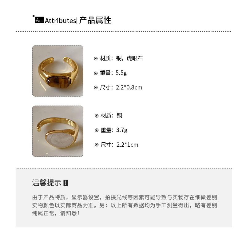 A廠【HR2211】18K厚金虎眼石橢圓開口戒指輕奢復古食指戒中古風高級感百搭手飾 24.08-3
