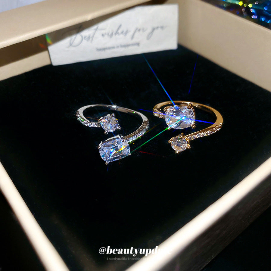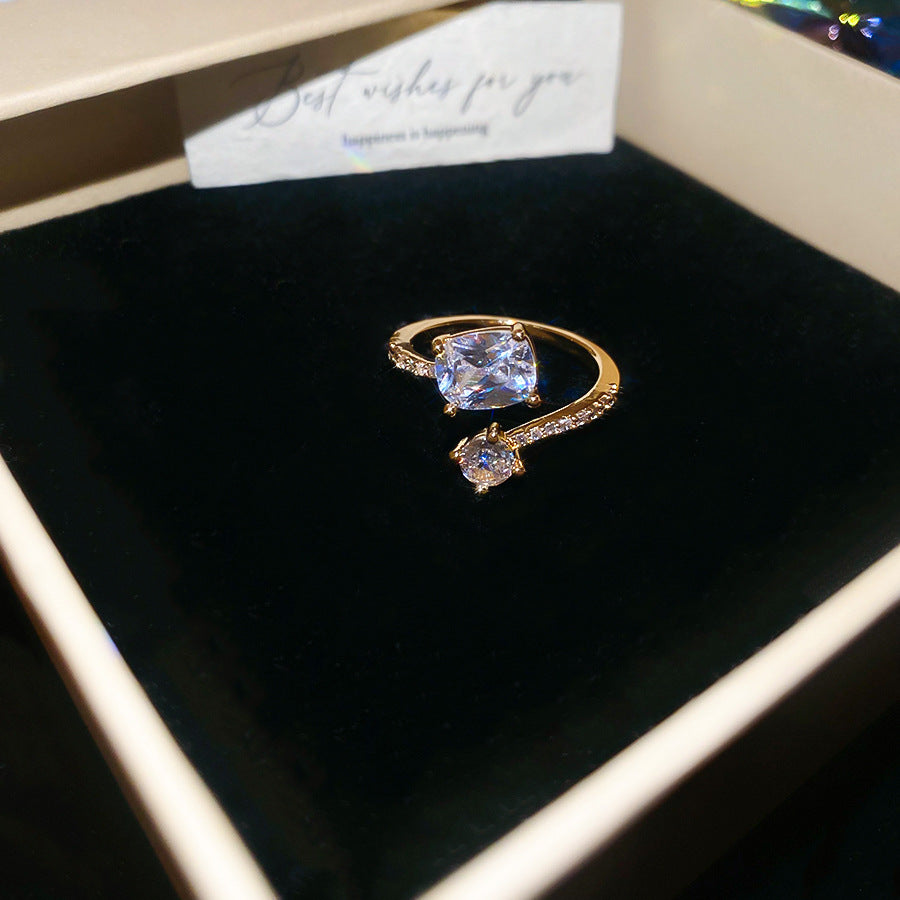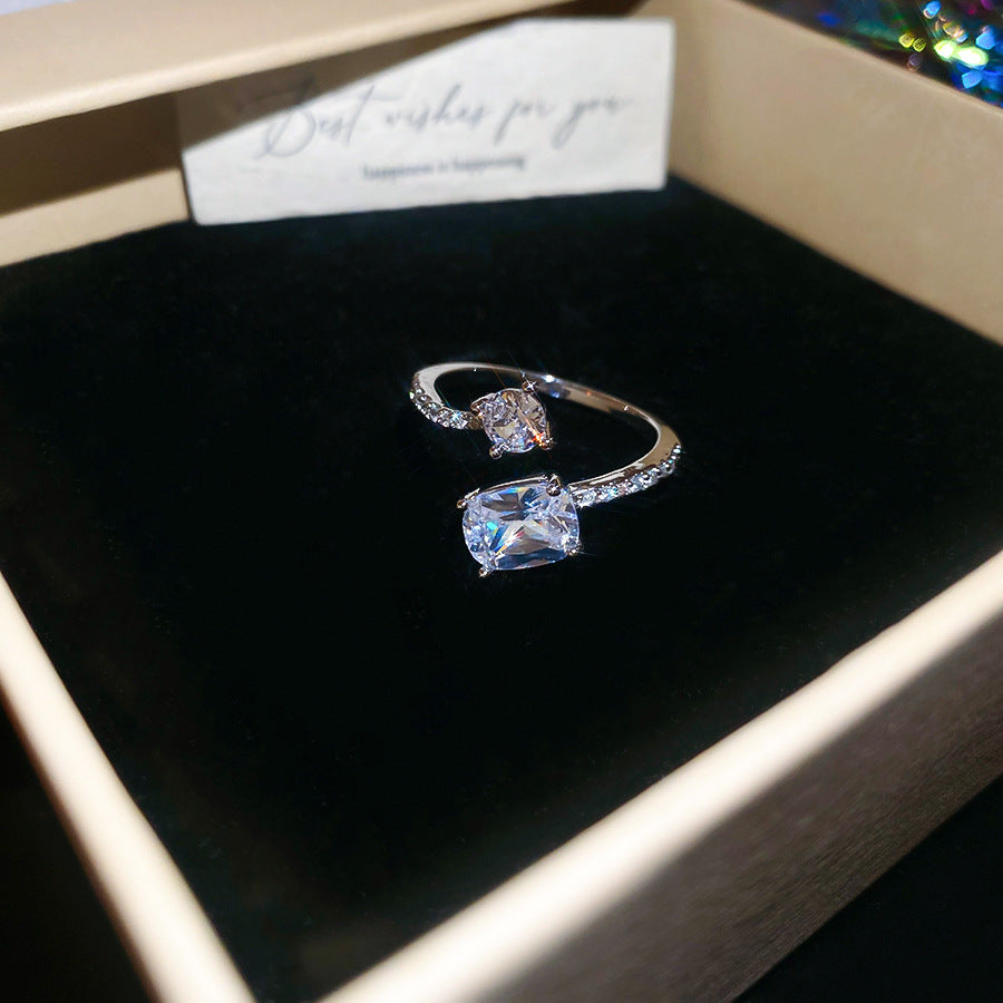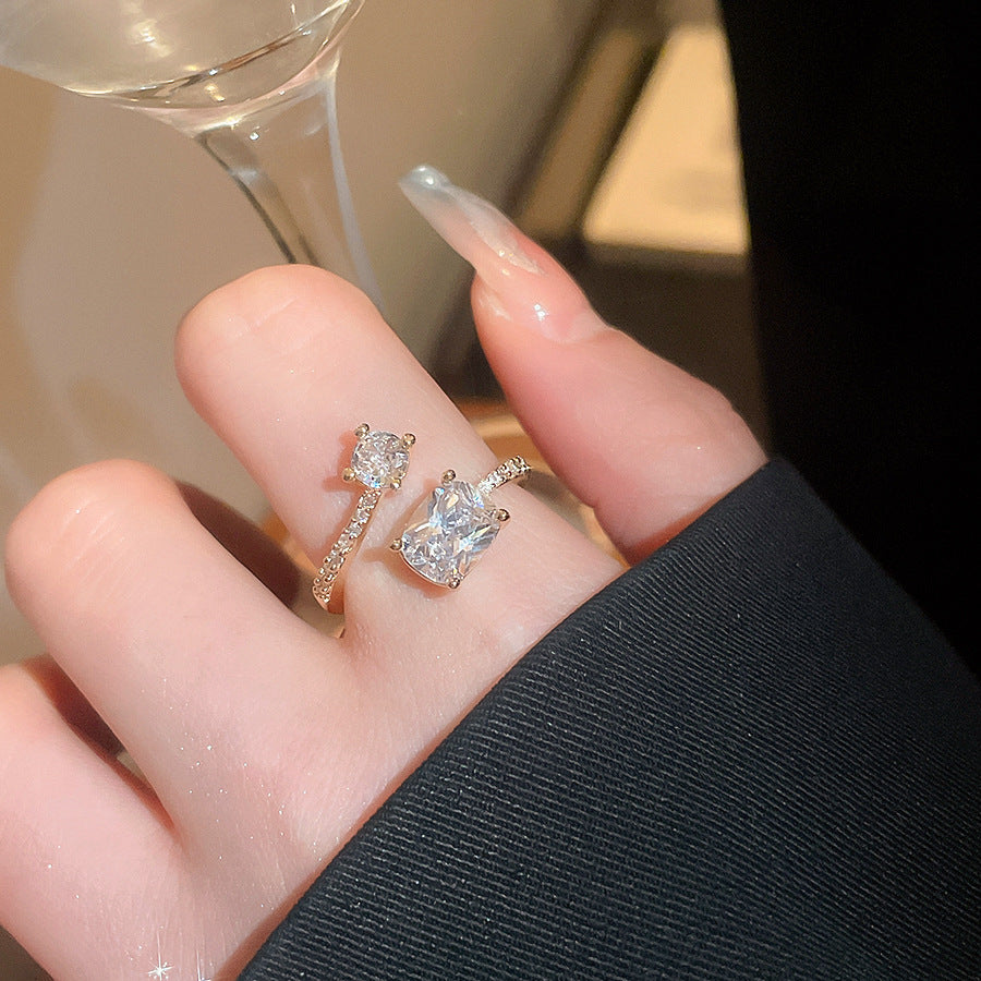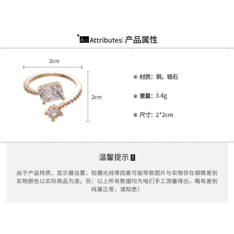 A廠【HR2604】鋯石方形交叉開口戒指新款精緻潮流百搭食指戒輕奢高級感指環 25.06-2