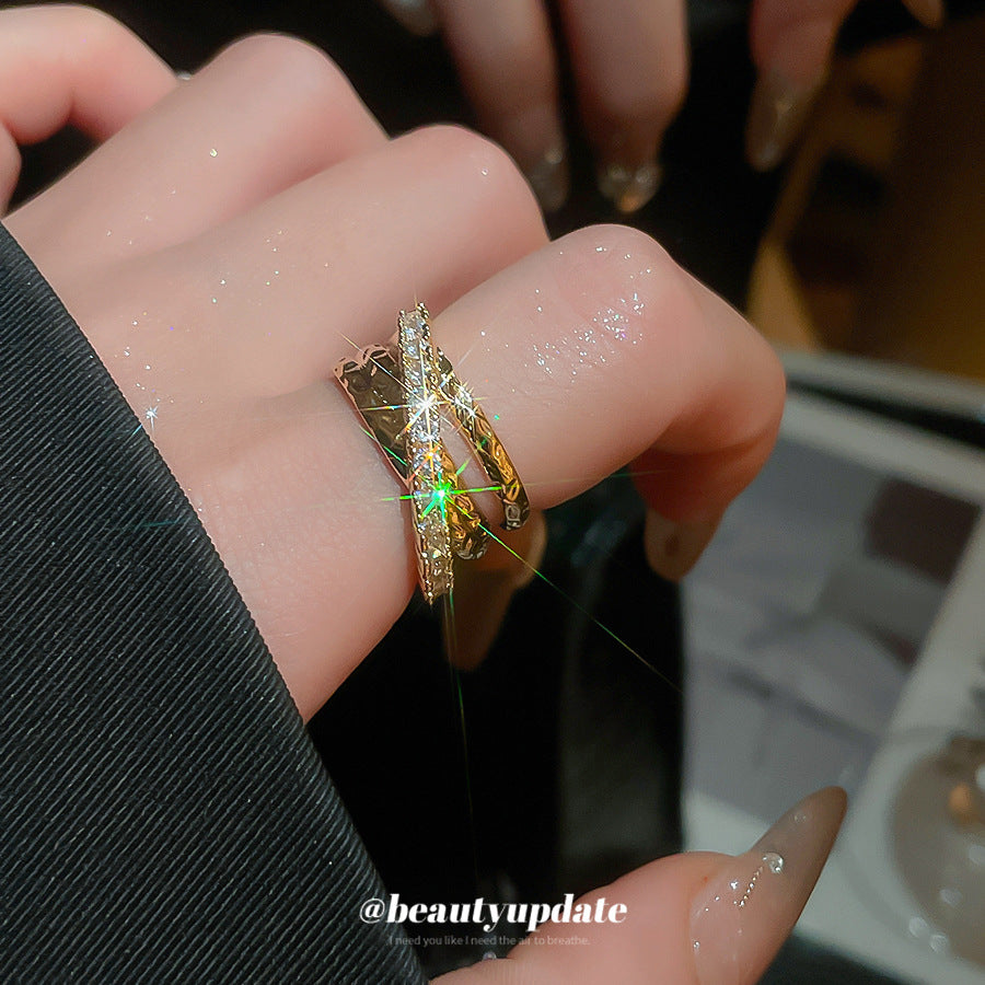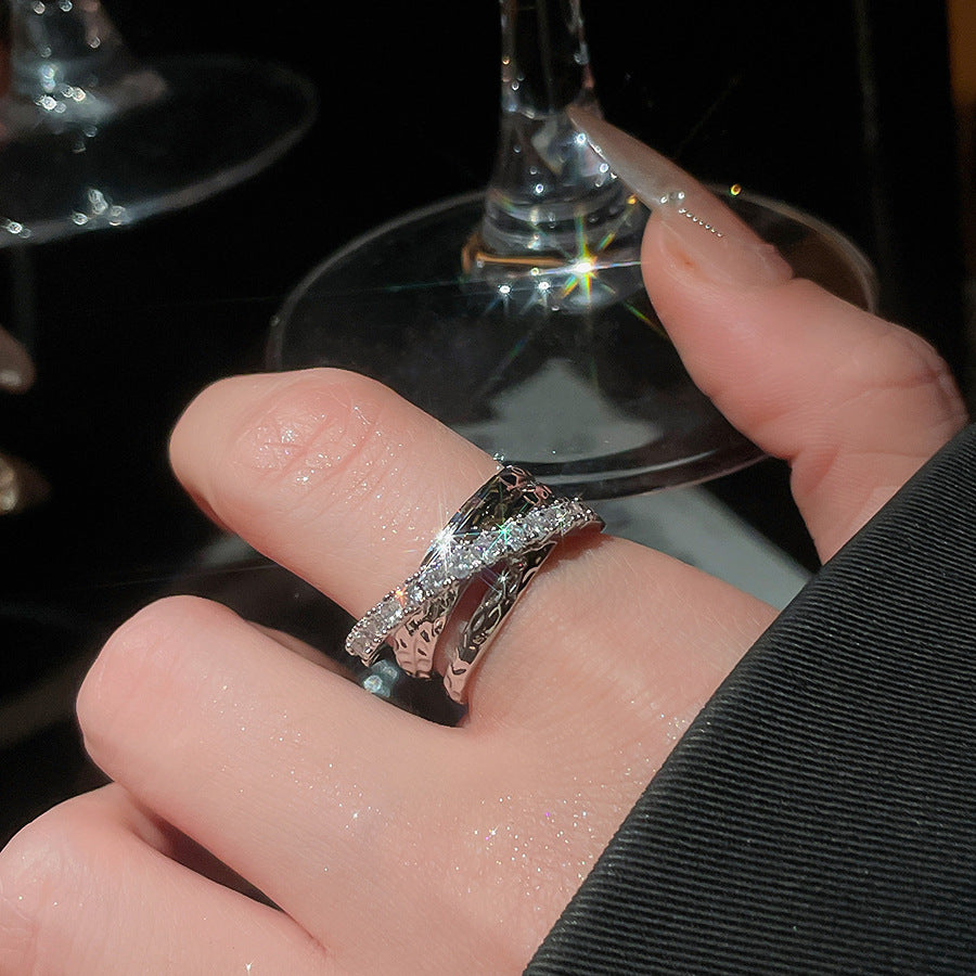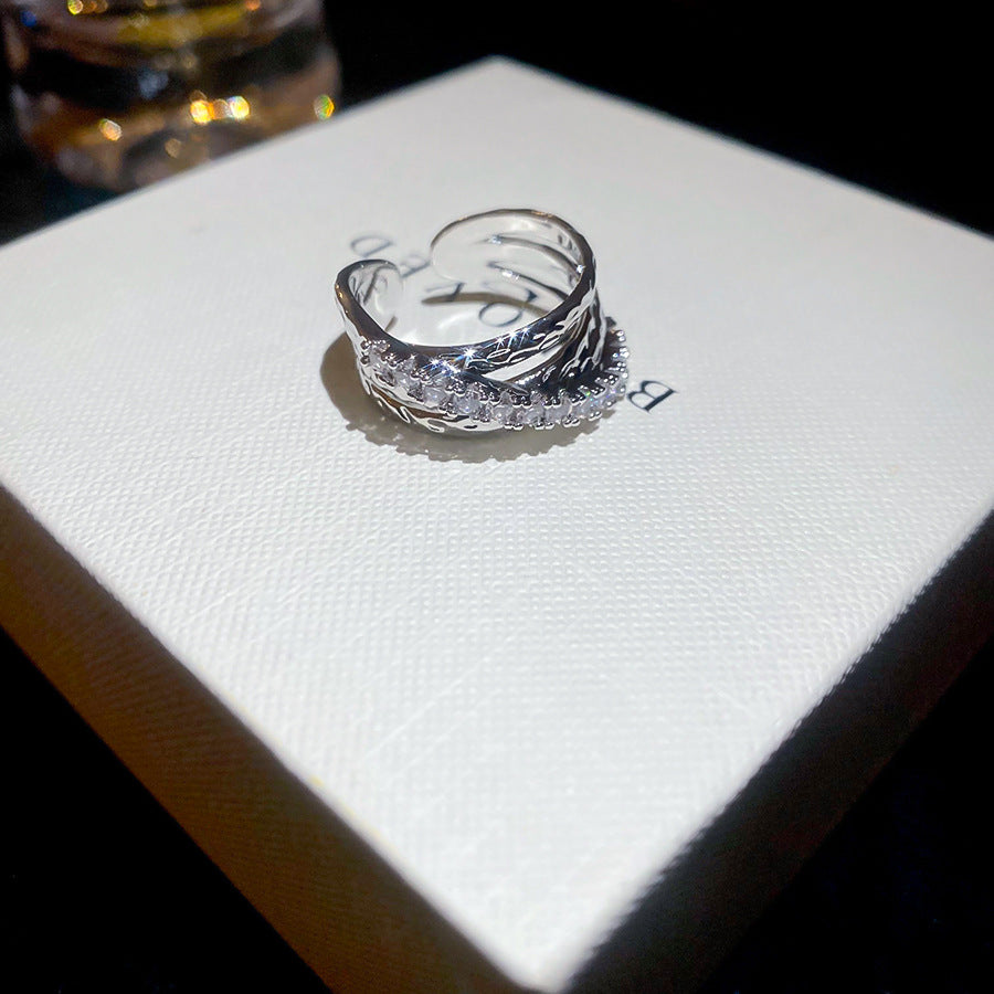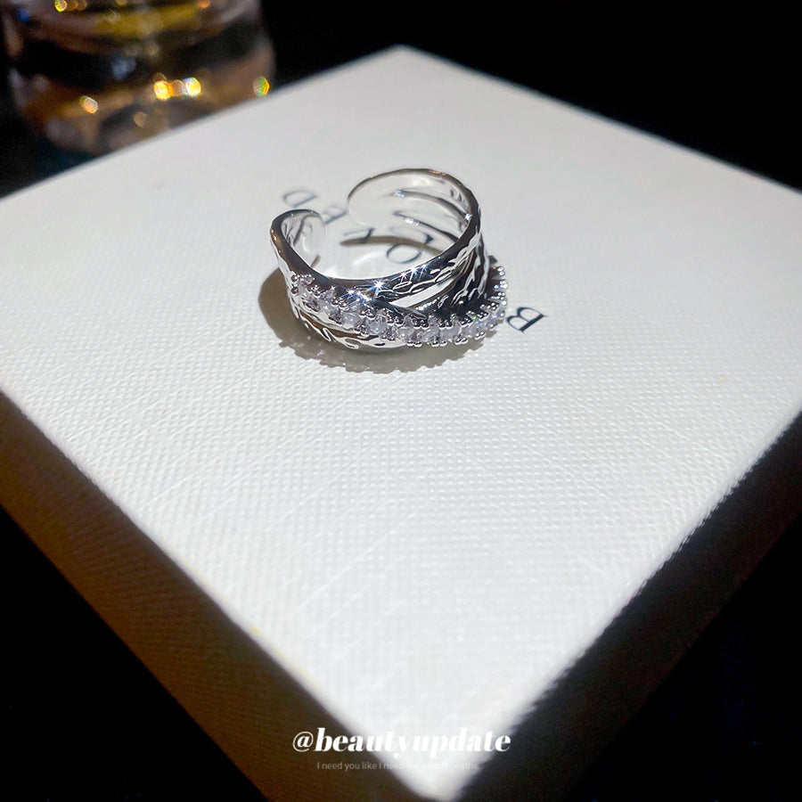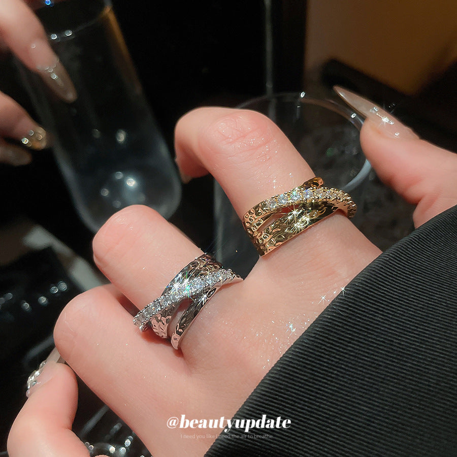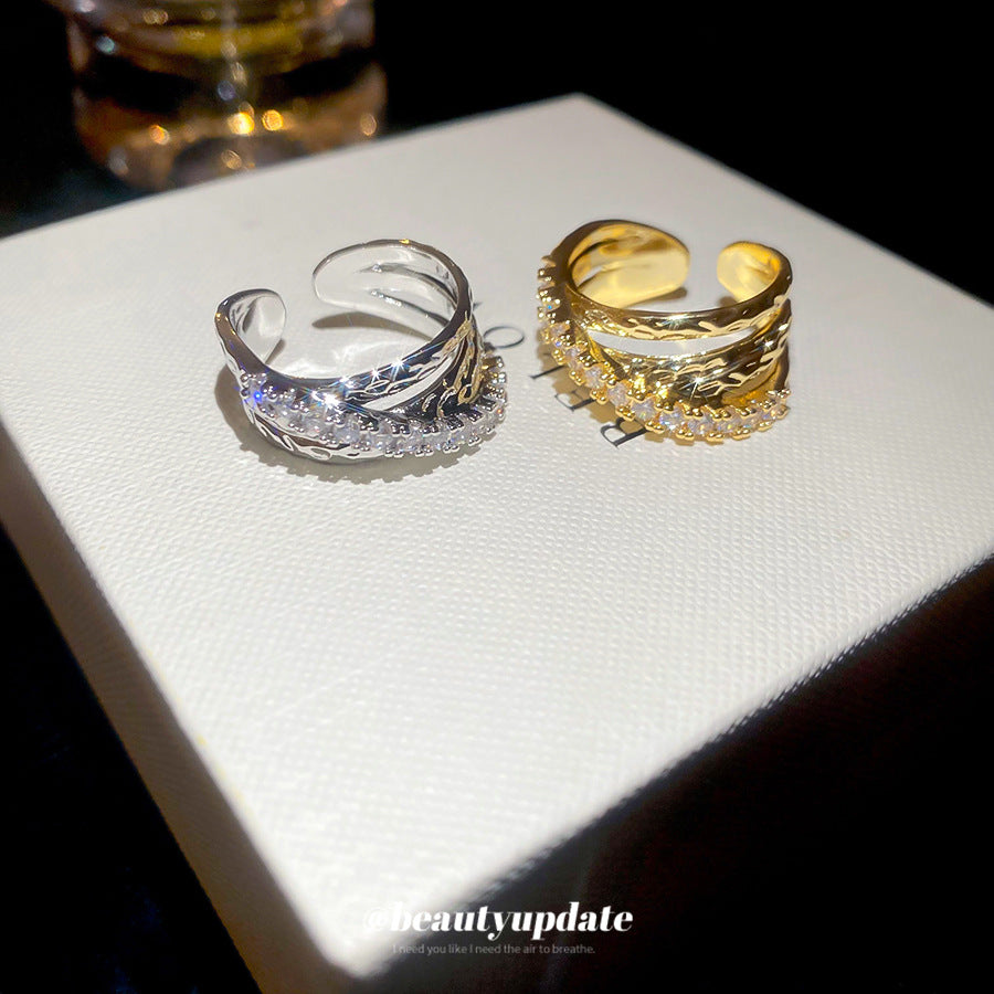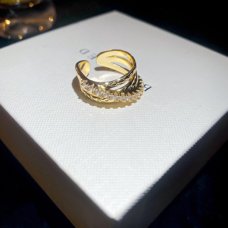 A廠【HR2784】歐美跨境鋯石三層交叉開口戒指時尚百搭氣質食指戒輕奢高級感指環 25.10-4
