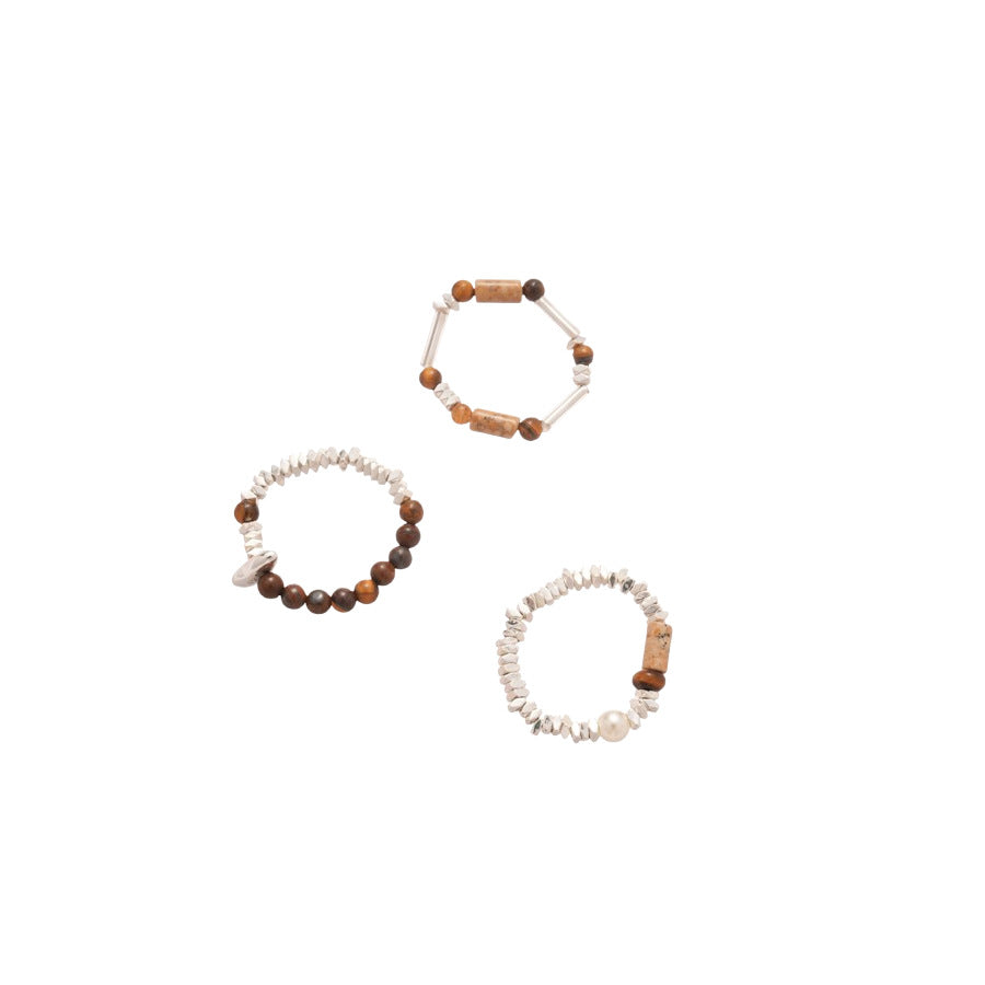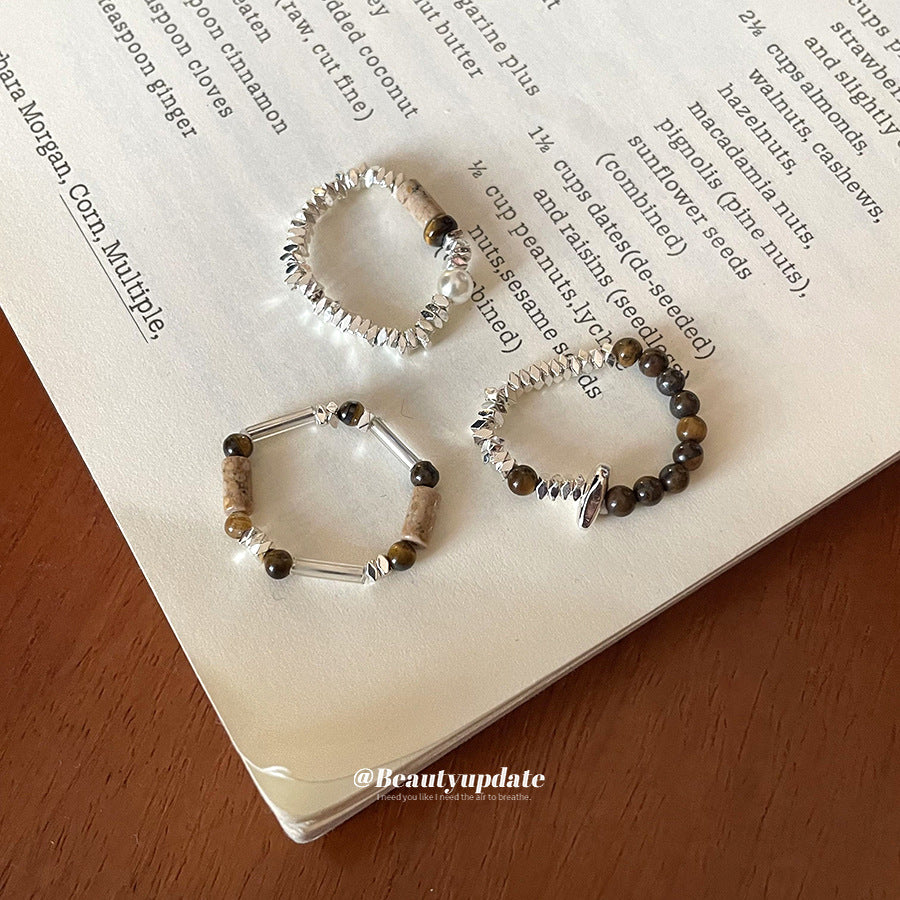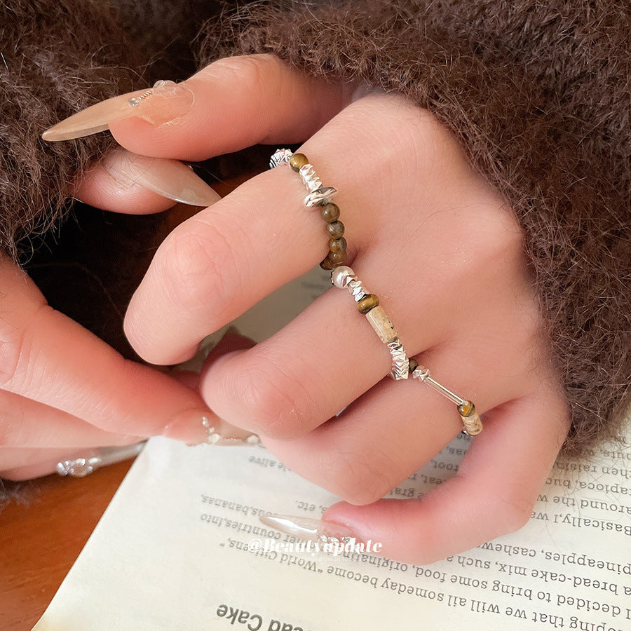 A廠【HR2789】復古碎銀黑膽石石頭串珠戒指民族風食指戒個性小眾設計感指環 25.10-4