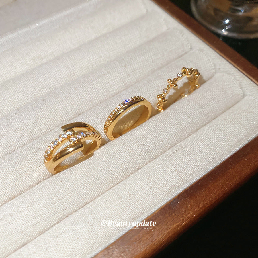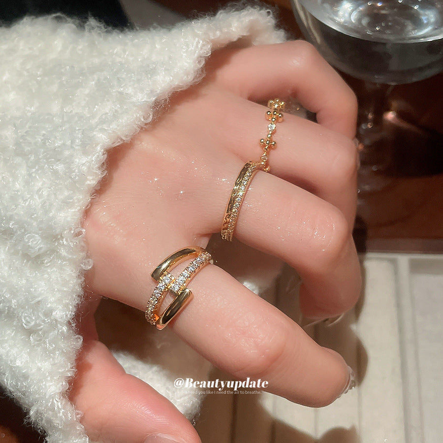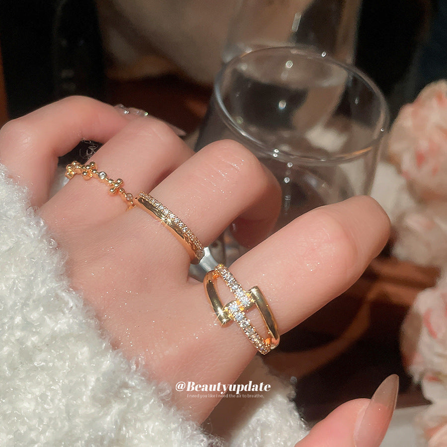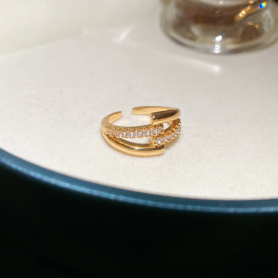 A廠【HR2797】18k真金電鍍鋯石開口戒指小眾高級感氣質食指戒精緻輕奢百搭手飾 25.11-1