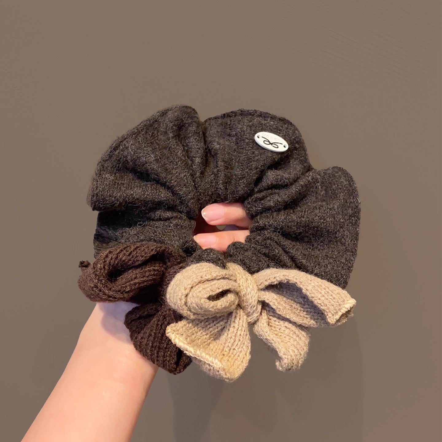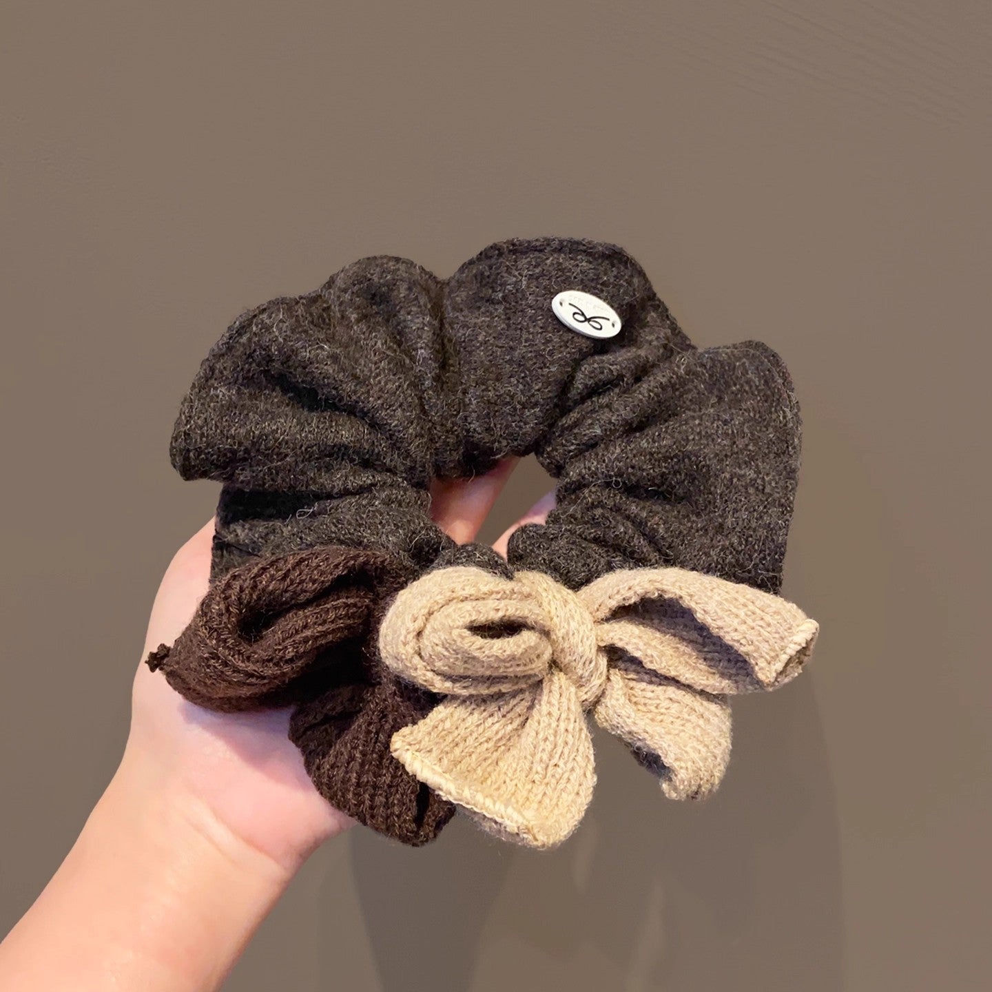 C廠【i17-1】韓系咖色毛線蝴蝶結大腸髮圈女低丸子頭紮馬尾頭繩紮頭髮頭花髮繩 25.12-4「C廠-單筆結帳需滿,NT$500出貨(不含運費)」