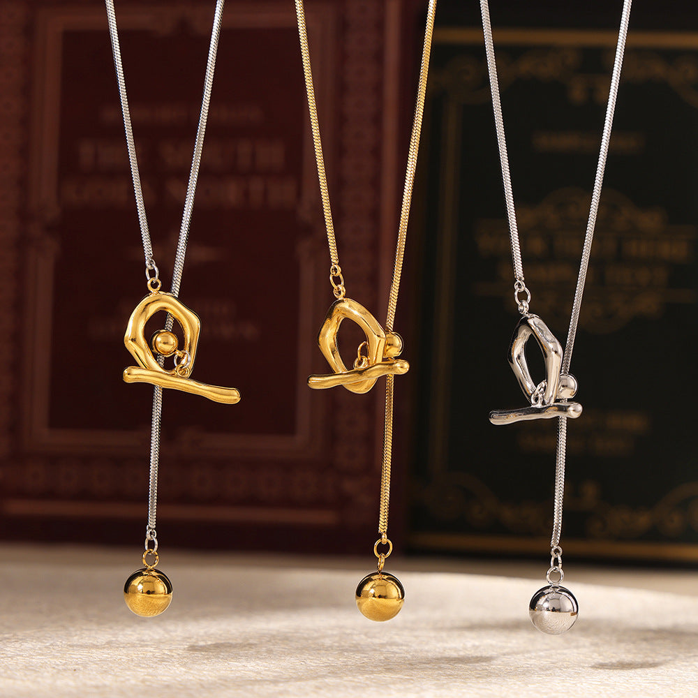 B廠【M067】歐美chic風熱銷款OT扣圓珠毛衣鏈可抽拉調整長度不鏽鋼不掉色飾品 24.08-3