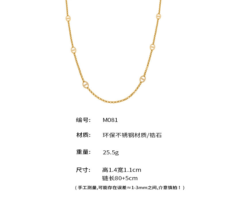 B廠【M081】超閃5A鋯石黏鑽日字扣長毛衣鏈不鏽鋼鍍18k真金保色飾品 25.10-3