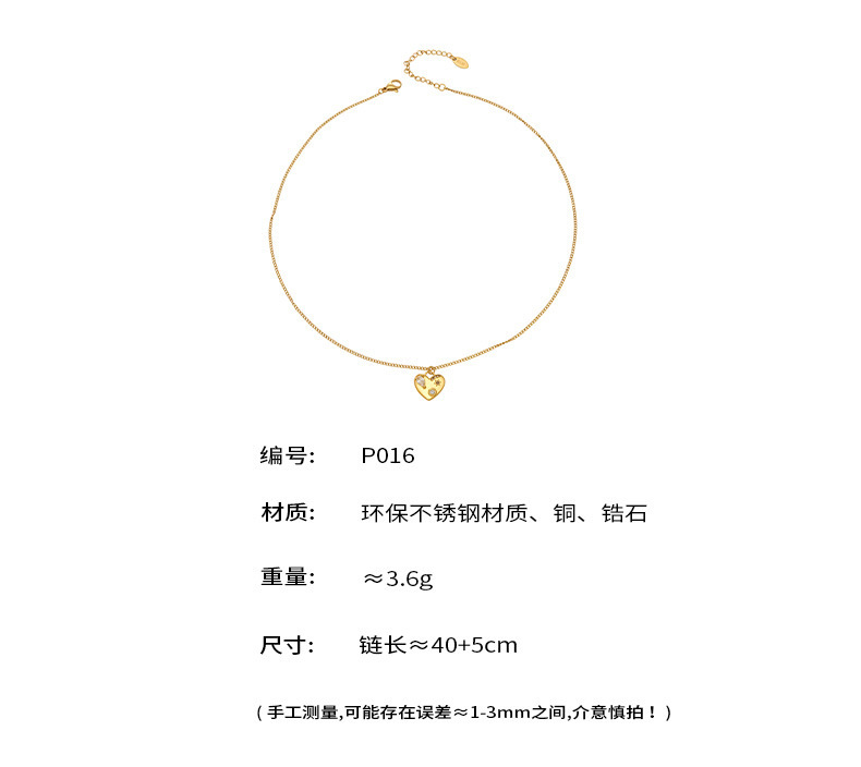 B廠【P016】法式愛心鑲嵌鋯石銅材質吊墜ins簡約輕奢時尚不鏽鋼鏈條鎖骨項鍊 26.02-1