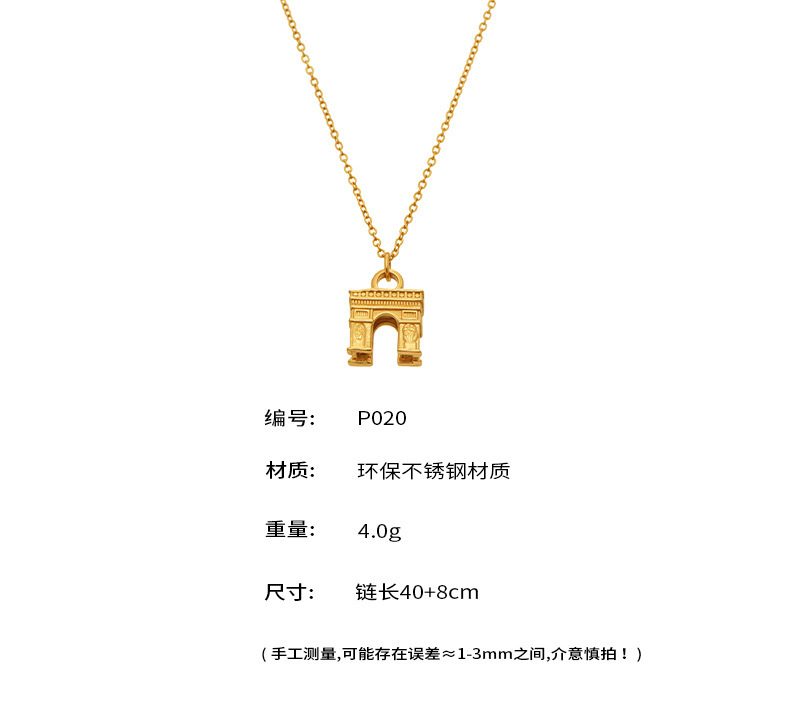 B廠【P020】歐美時尚凱旋門設計感吊墜鎖骨鏈條項鍊不鏽鋼鍍18k真金跨境飾品 26.02-1